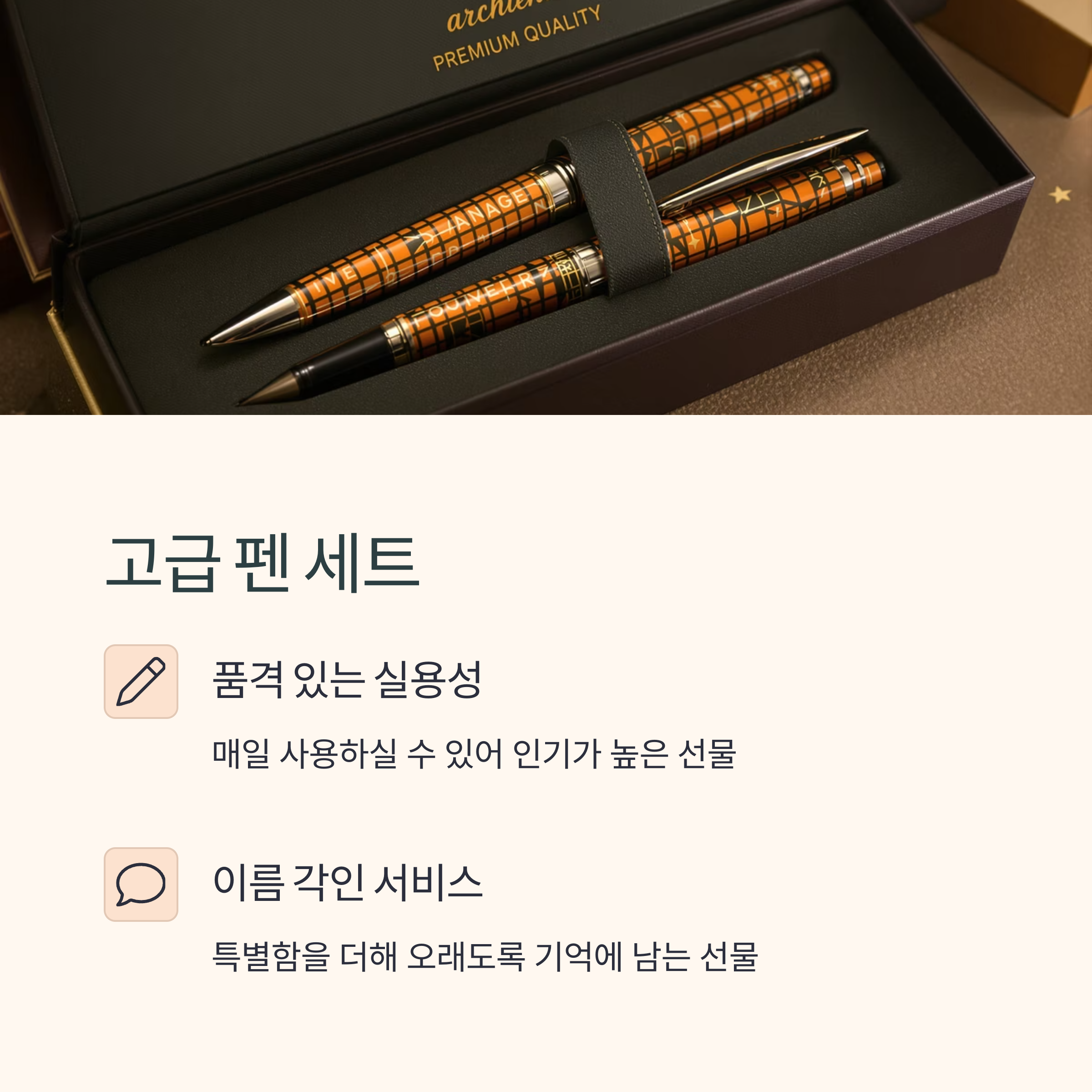 품격 있는 실용 선물의 대표적인 예로, 매일 사용하실 수 있어 인기가 높습니다. 이름 각인 서비스를 이용하면 더욱 특별한 선물이 될 수 있습니다. 오래도록 사용하실 수 있는 실용적인 아이템이기에 스승의 날 선물 best 10 중에서도 손꼽히는 선택입니다.