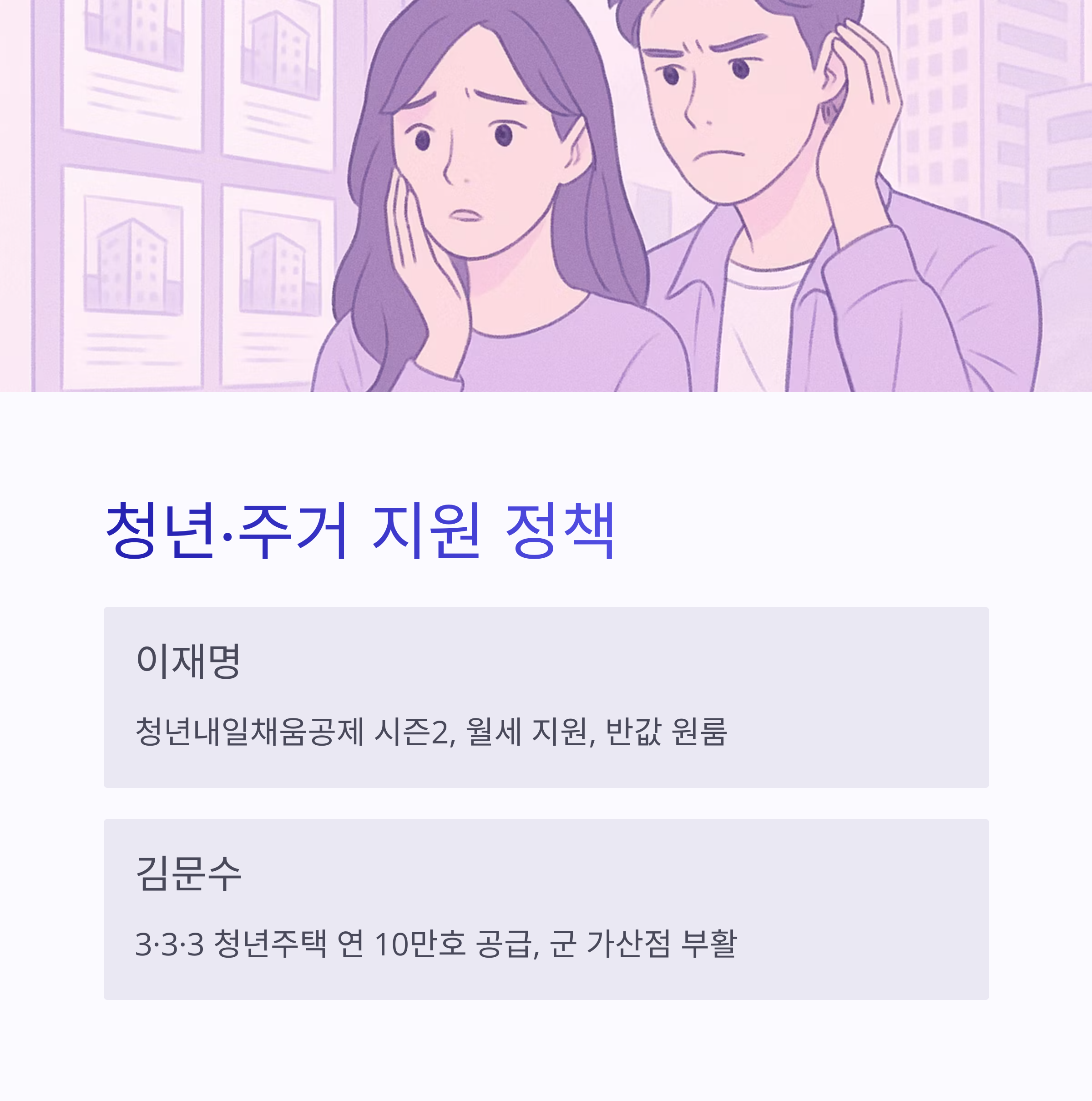 | 후보 | 청년 주거 공약 |
