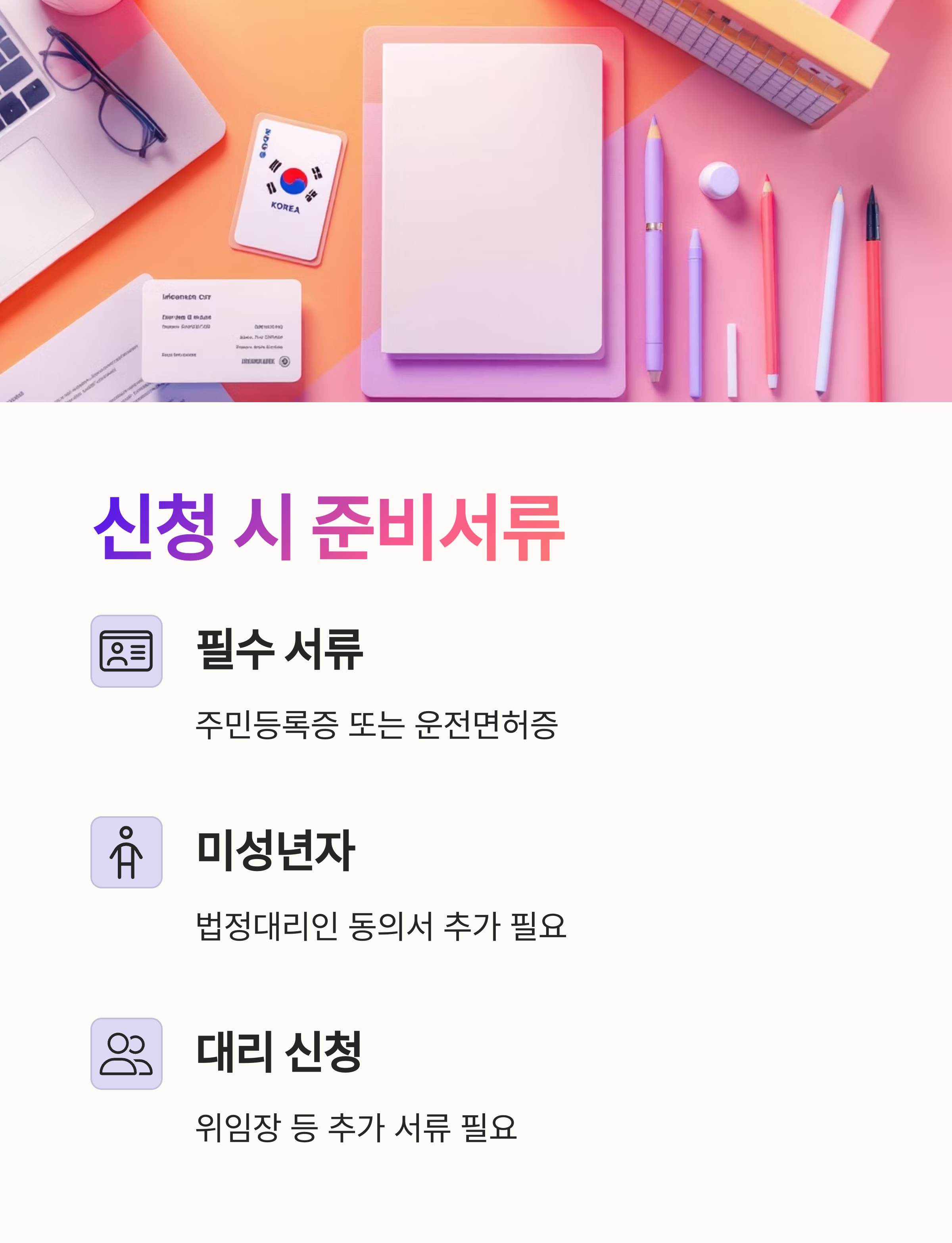 - 미성년자: 법정대리인 동의서