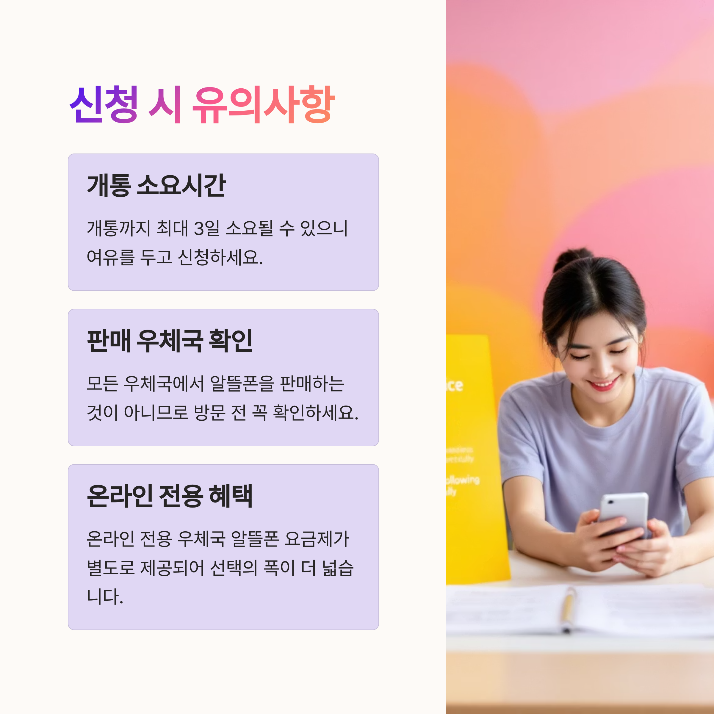 ※ 사전 확인 필수: 알뜰폰 판매 지정 우체국만 접수 가능