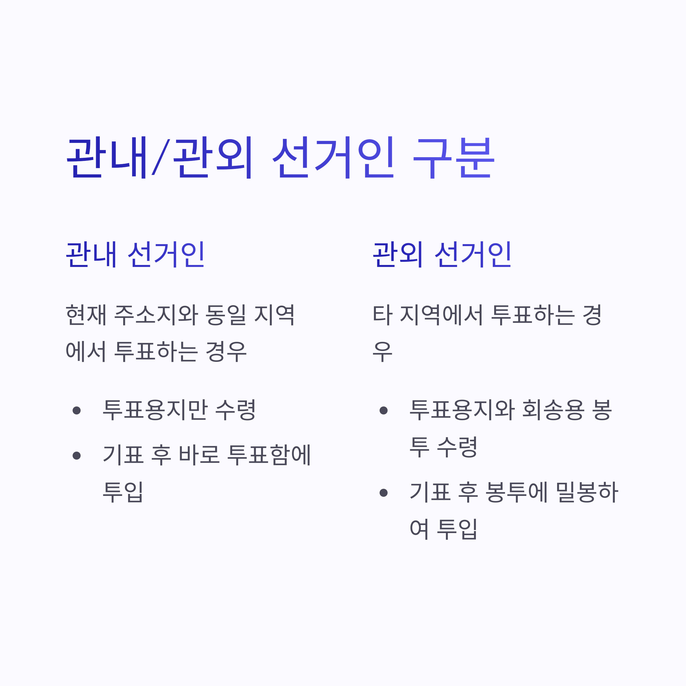 - 관외 유권자는 회송용 봉투도 함께 수령