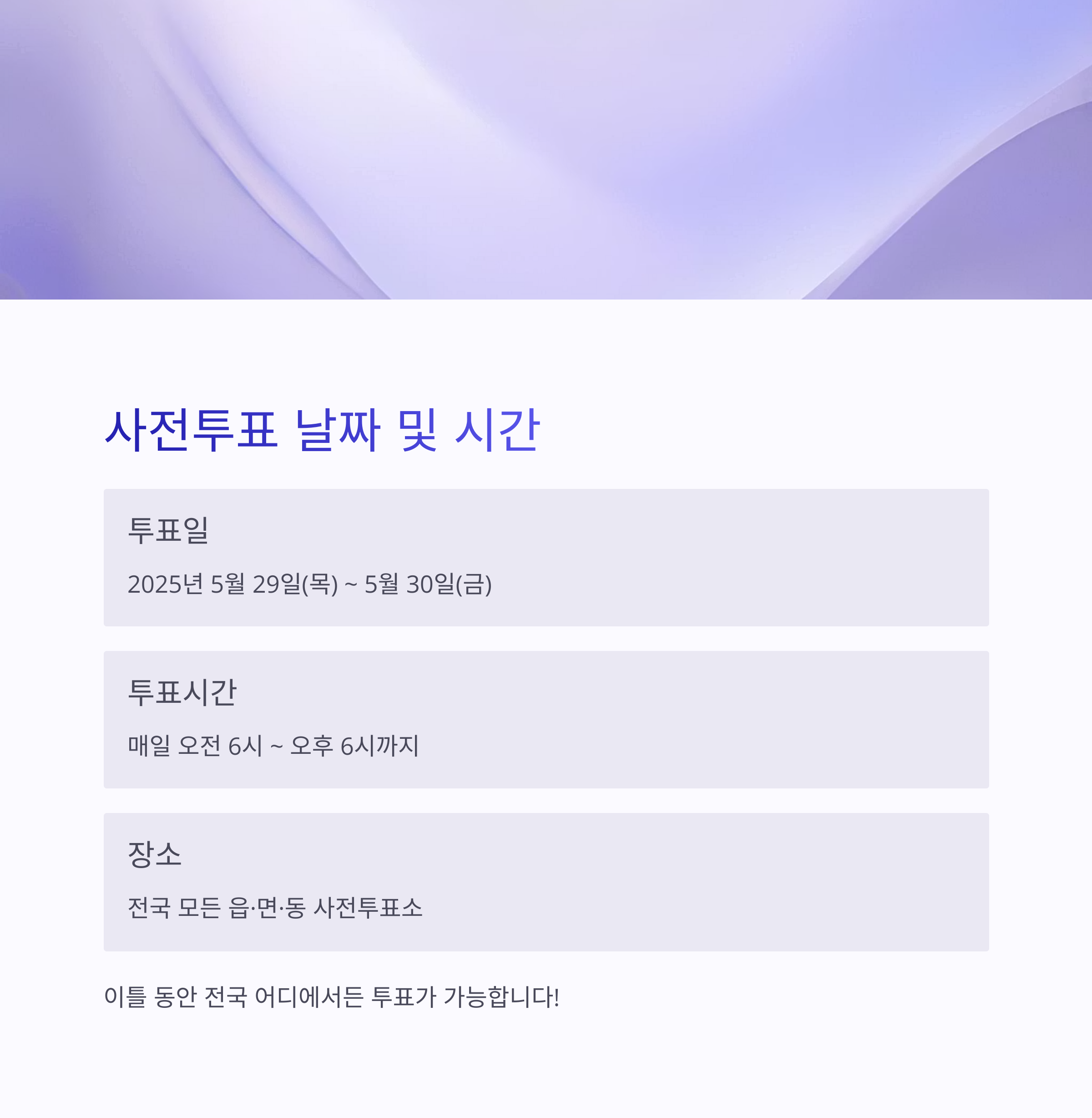 - 투표일: 2025년 5월 29일(목) ~ 5월 30일(금)