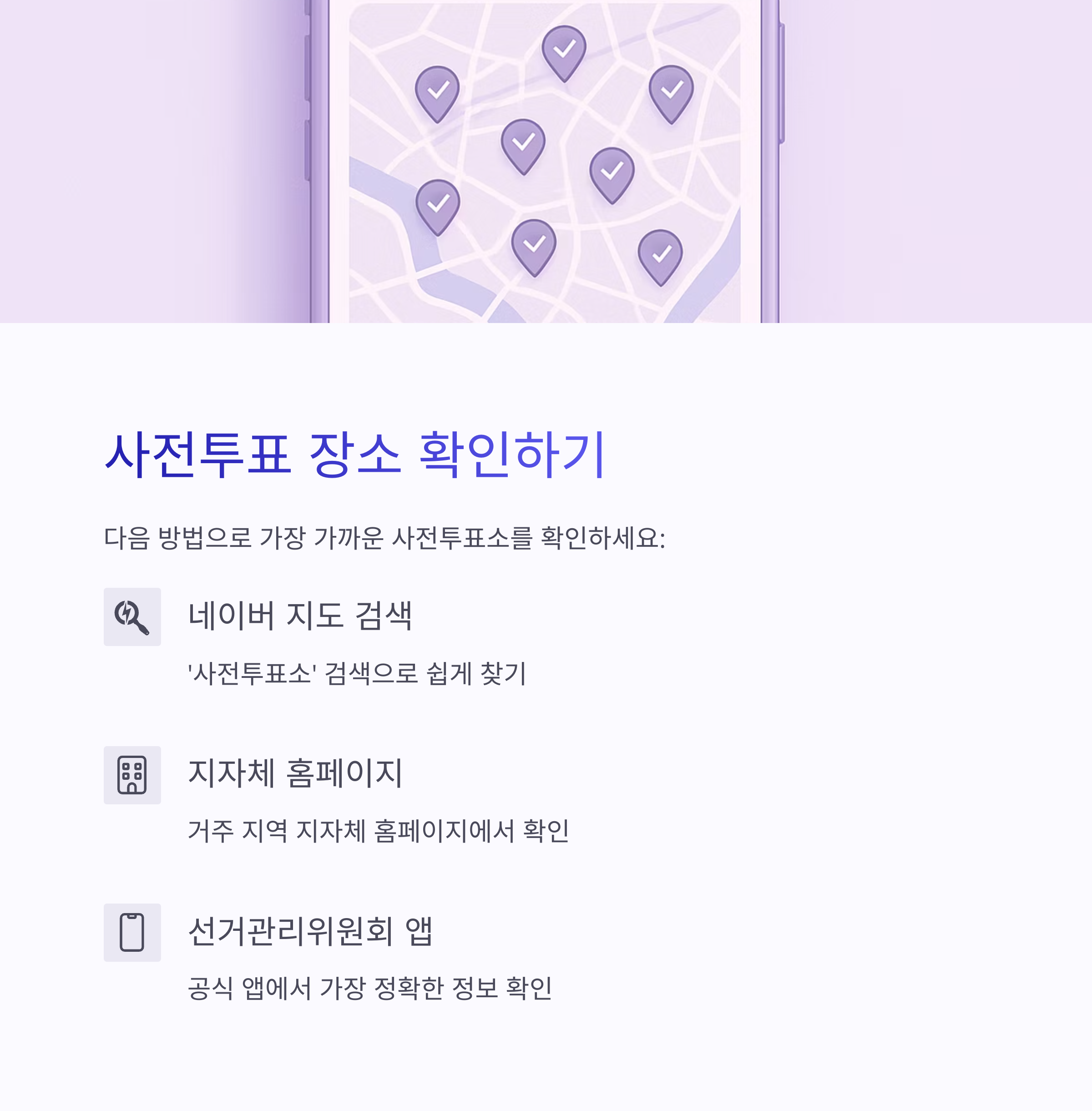 - 중앙선거관리위원회 홈페이지 또는 지자체 홈페이지에서 확인