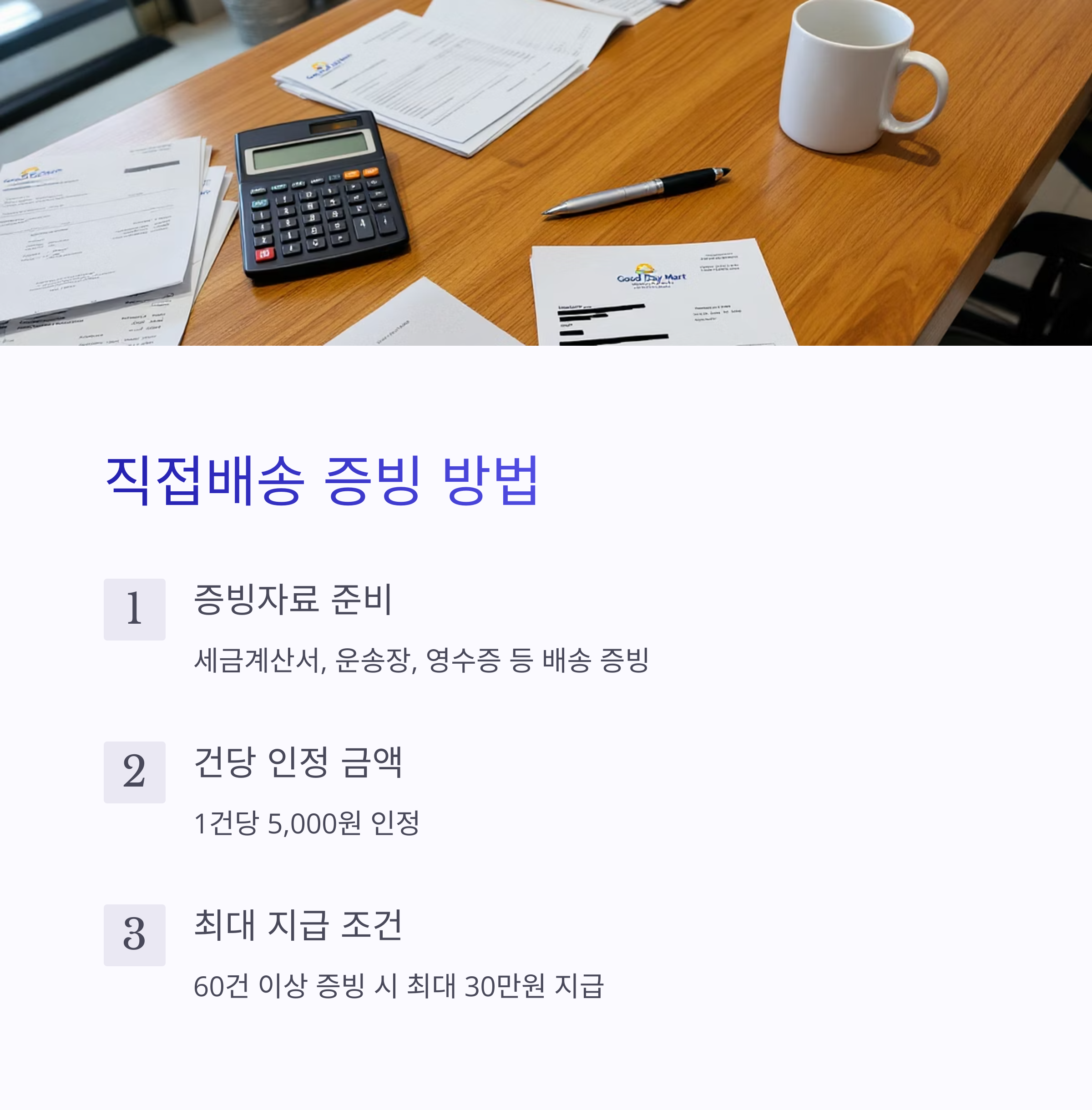 ※ 직접배송의 경우 1건당 5,000원 인정, 60건 이상 증빙 시 최대 지급
