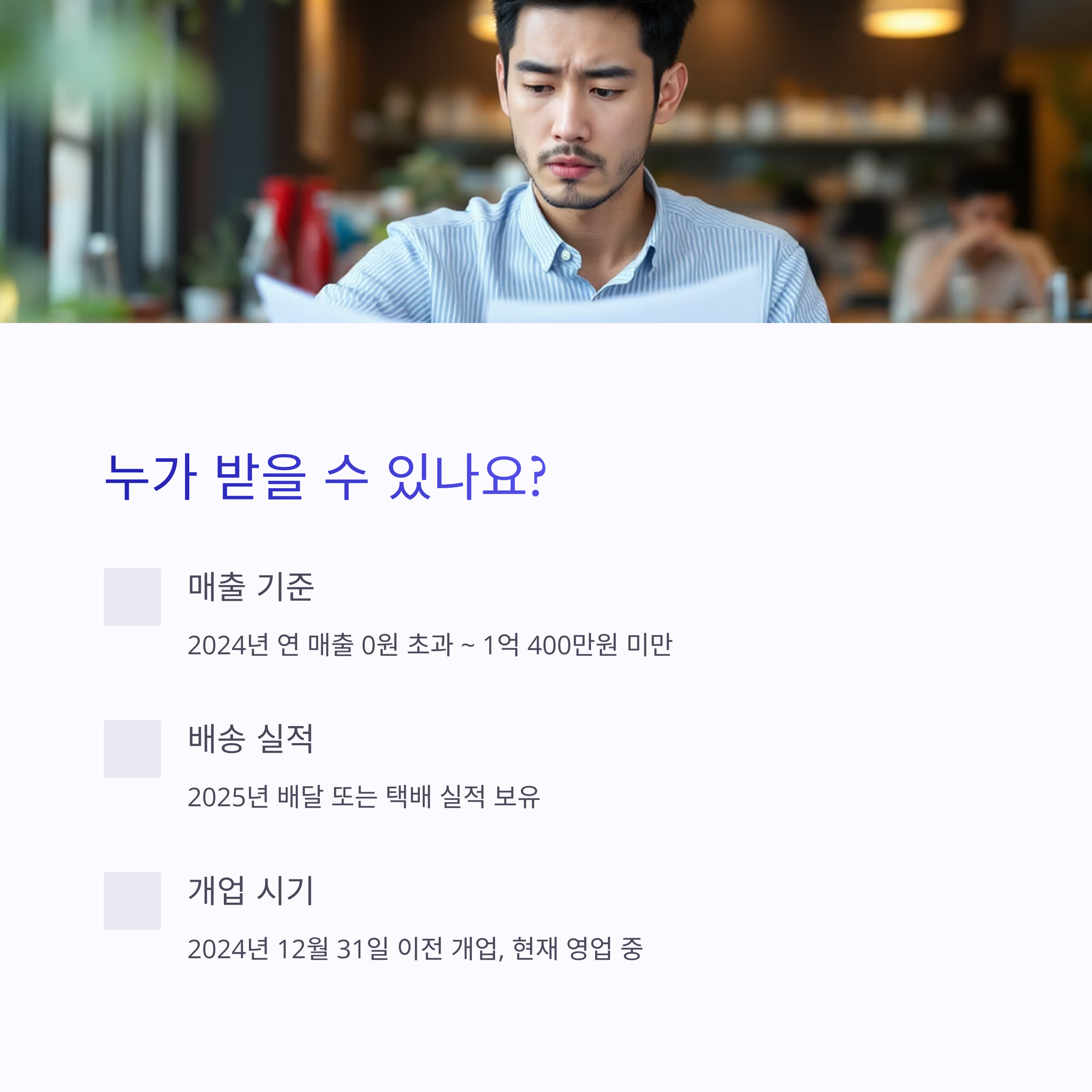 ※ 배달업·택배업이 주업종이거나 정책자금 제외 업종일 경우 제외됩니다.