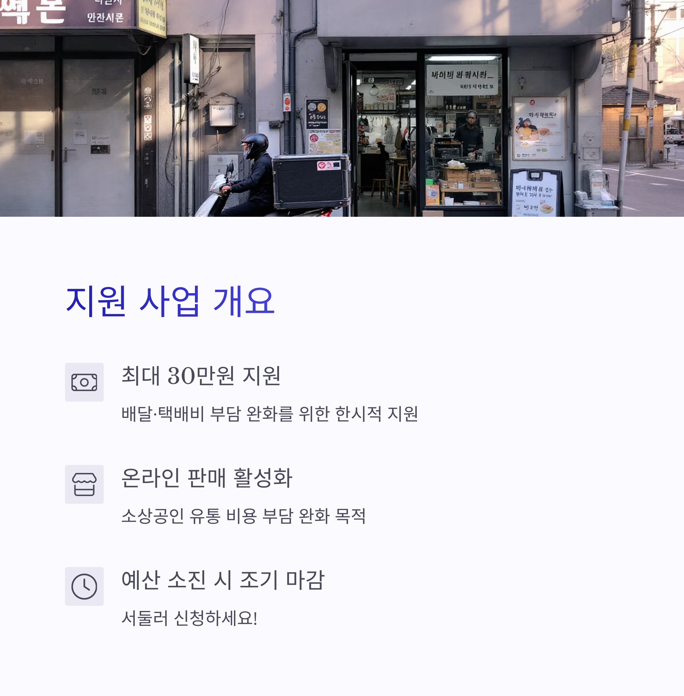 | 신속지급 | 2025년 2월 17일부터 예산 소진 시 | 배달앱·대행 이용 소상공인 | 온라인(자동확인) |