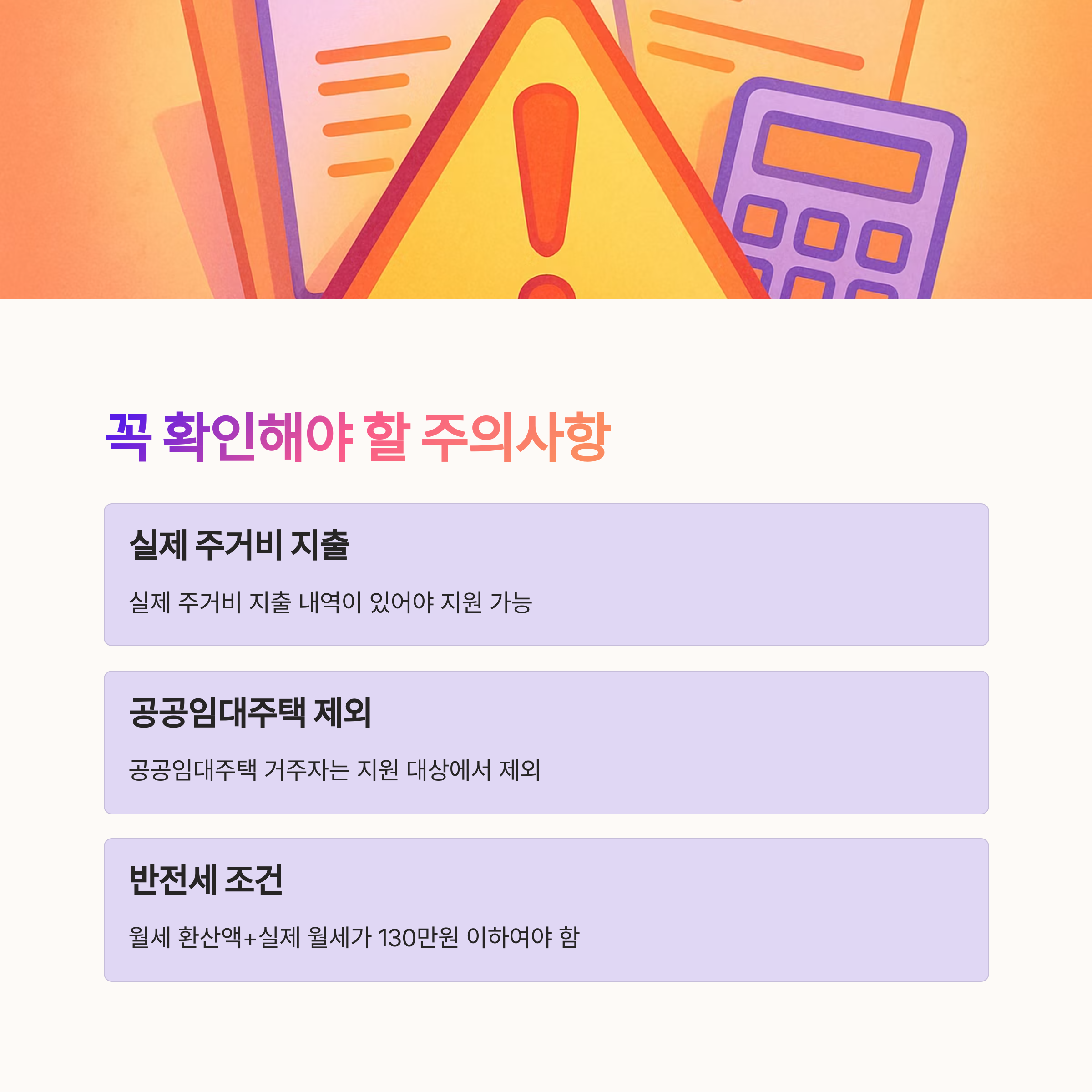 ✅ 실제 주거비 지출 내역이 있어야 지원 가능