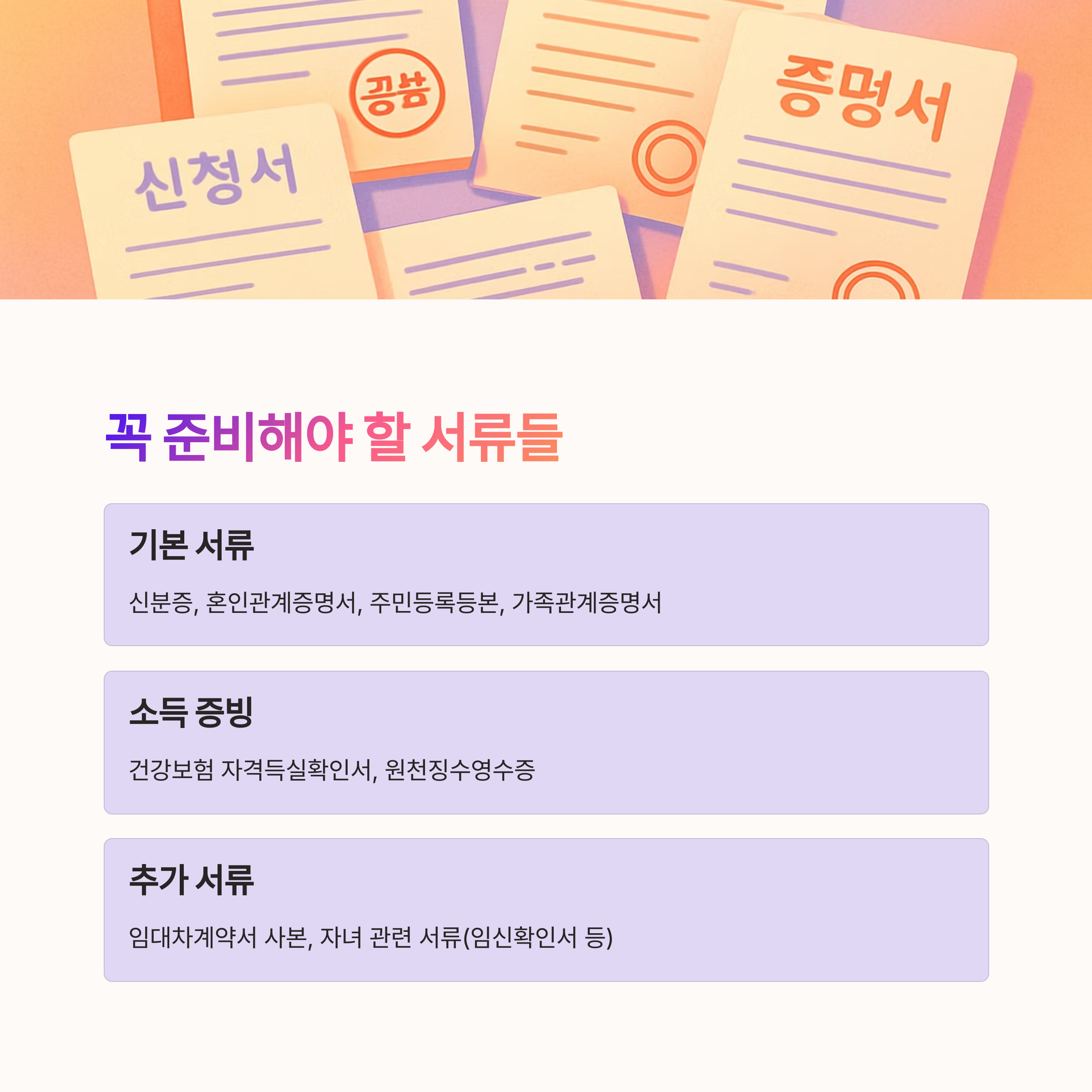 - 자녀 관련 서류 (임신확인서, 출생증명서 등)