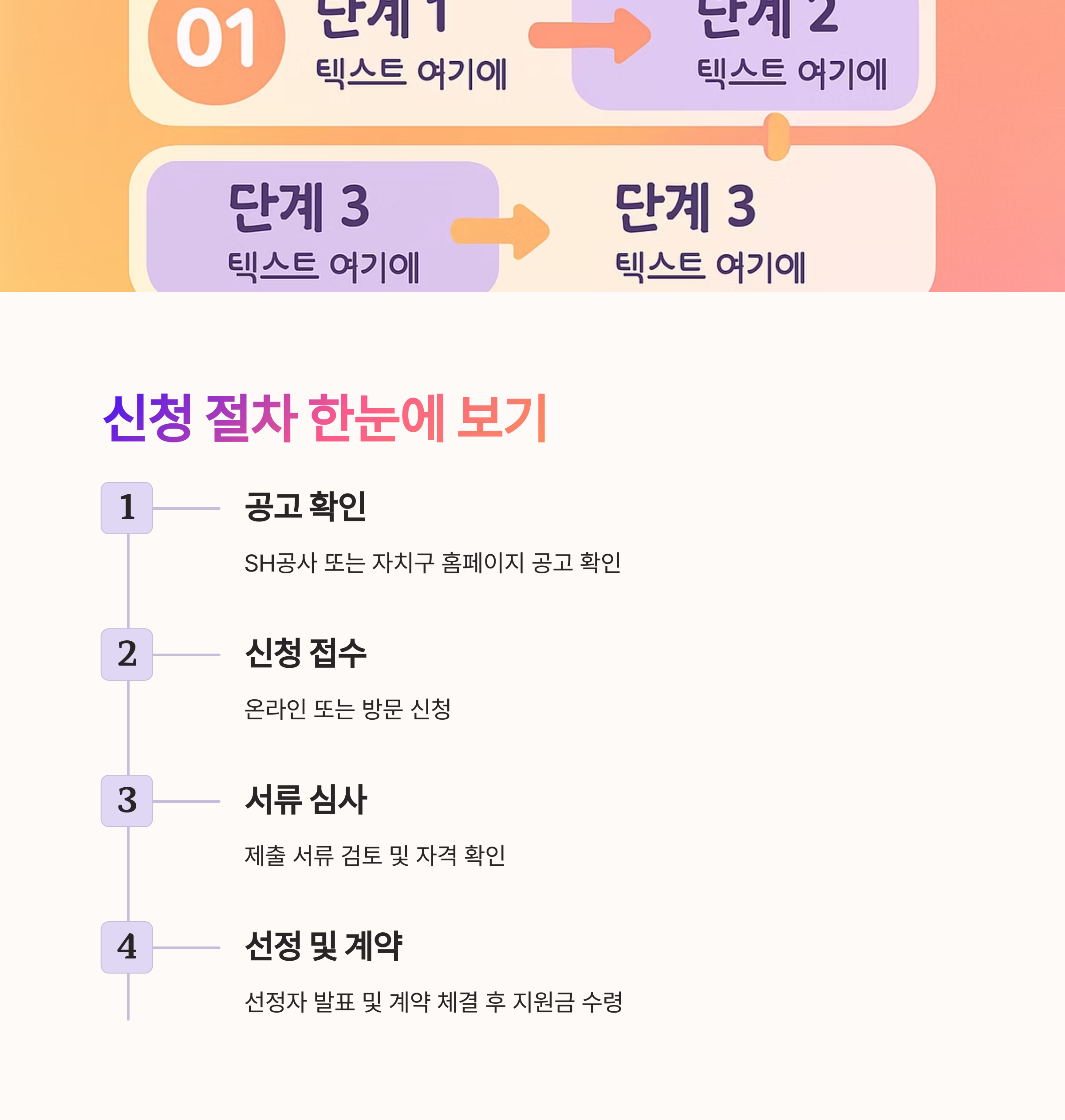 - 본인인증 → 신청서 작성 → 서류 첨부
