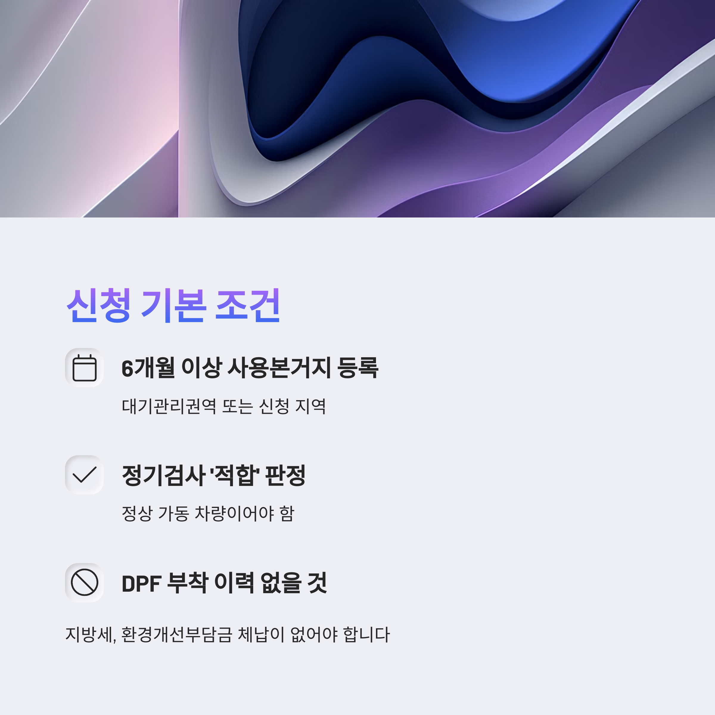 👉 관련 공고는 한국자동차환경협회 또는 해당 지자체 홈페이지에서 확인 가능합니다.
