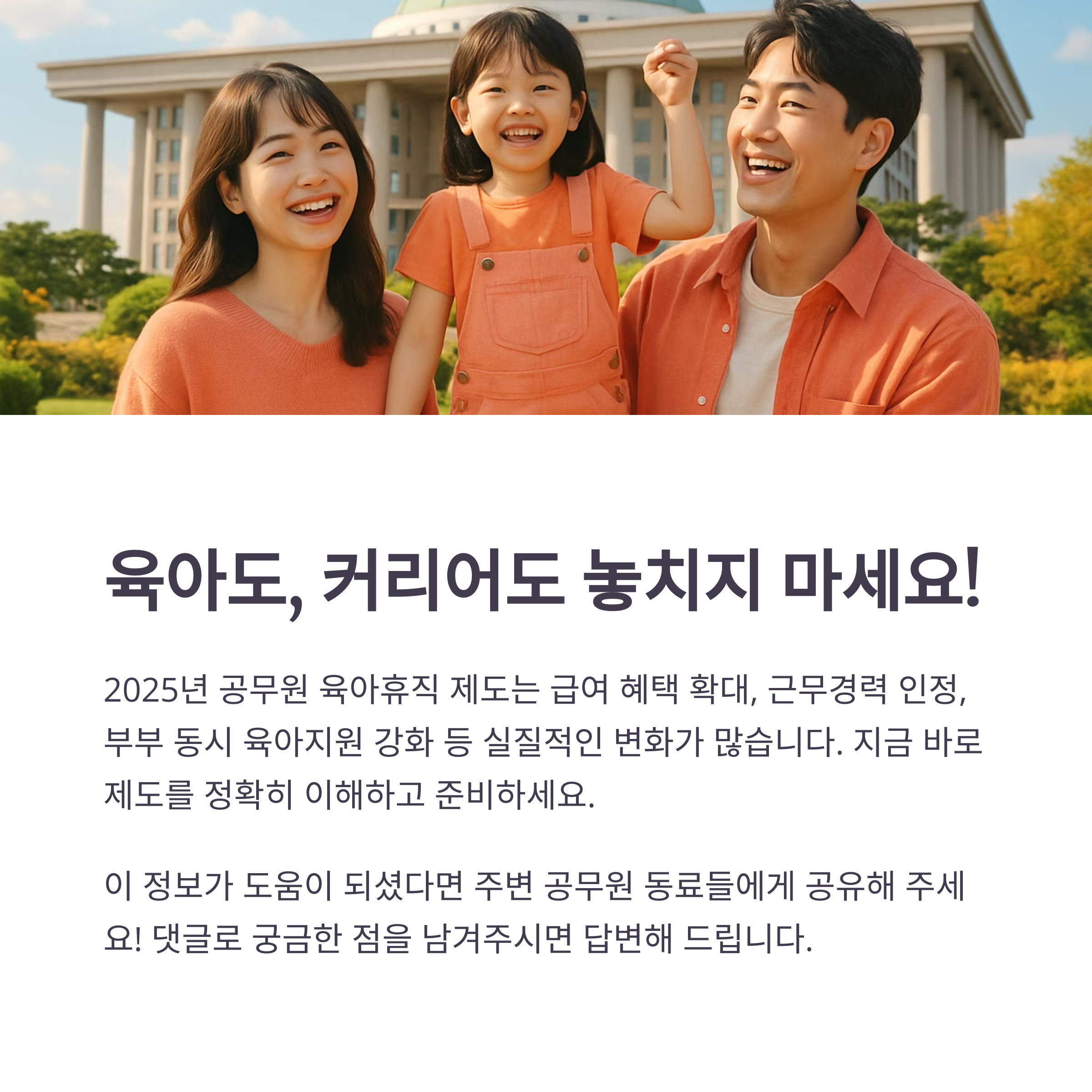 2025년 공무원 육아휴직 제도는 급여 혜택 확대, 근무경력 인정, 부부 동시 육아지원 강화 등 실질적인 변화가 많습니다.