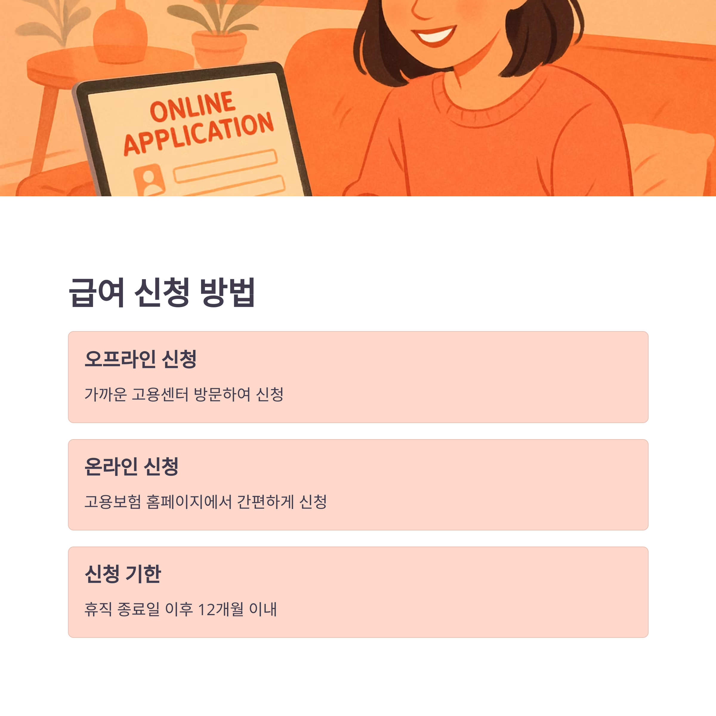 - 온라인: 고용보험 홈페이지 접속 후 신청