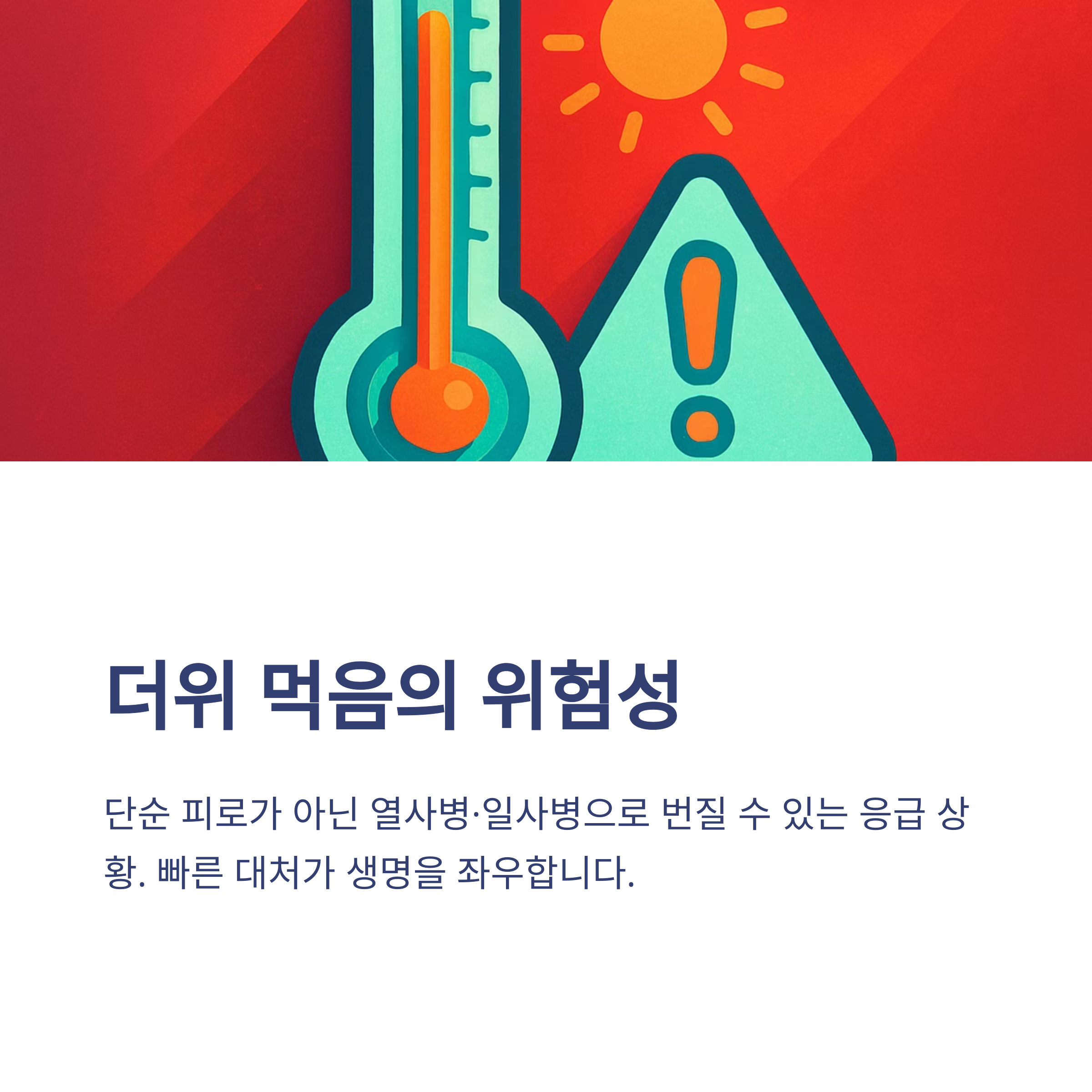 이는 단순한 피로가 아닌 열사병·일사병과 같은 응급 상황으로 번질 수 있으므로 빠르고 올바른 대처가 중요합니다.