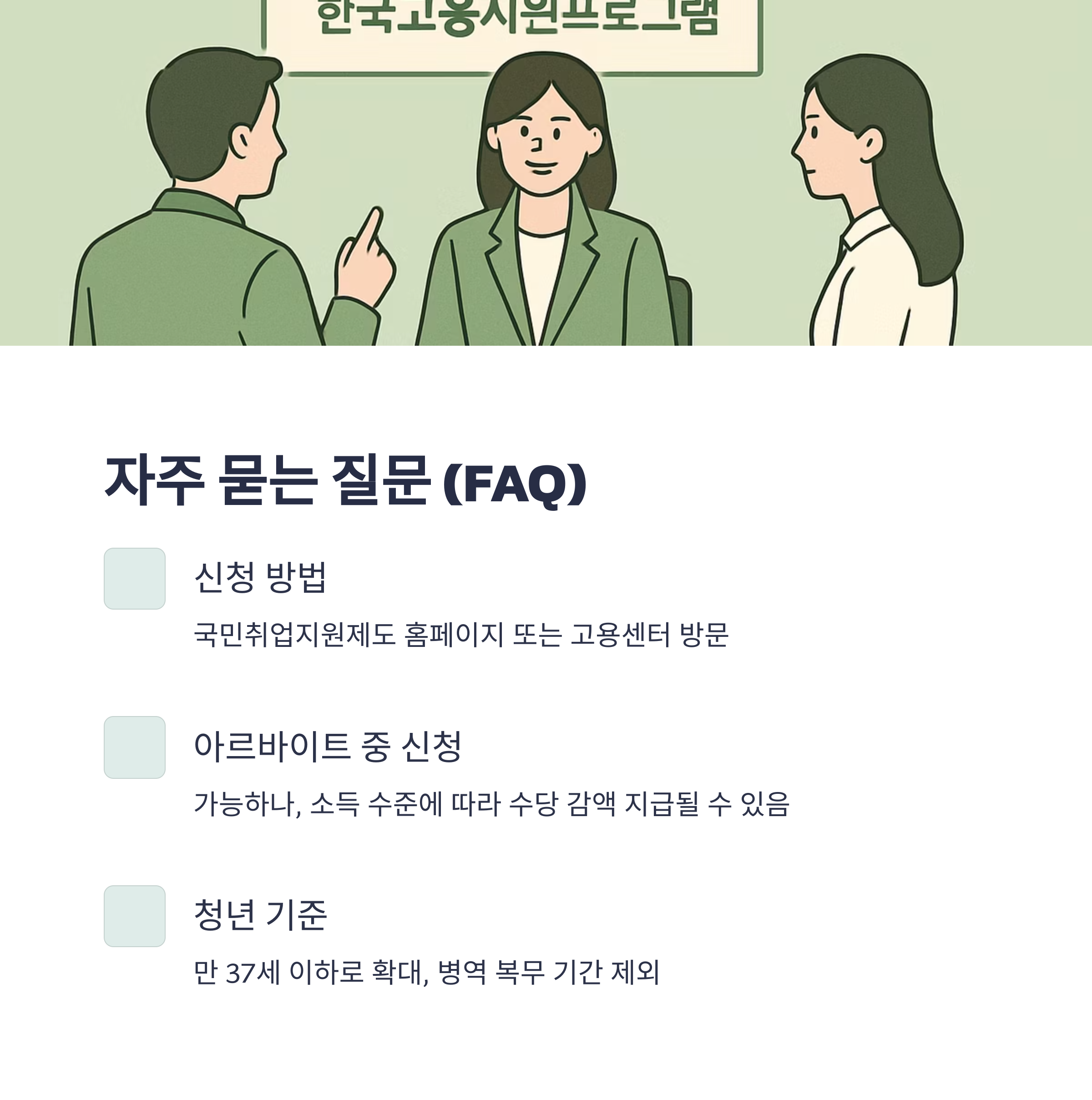 - 지원: 취업활동비용(훈련참여수당 등), 취업지원서비스