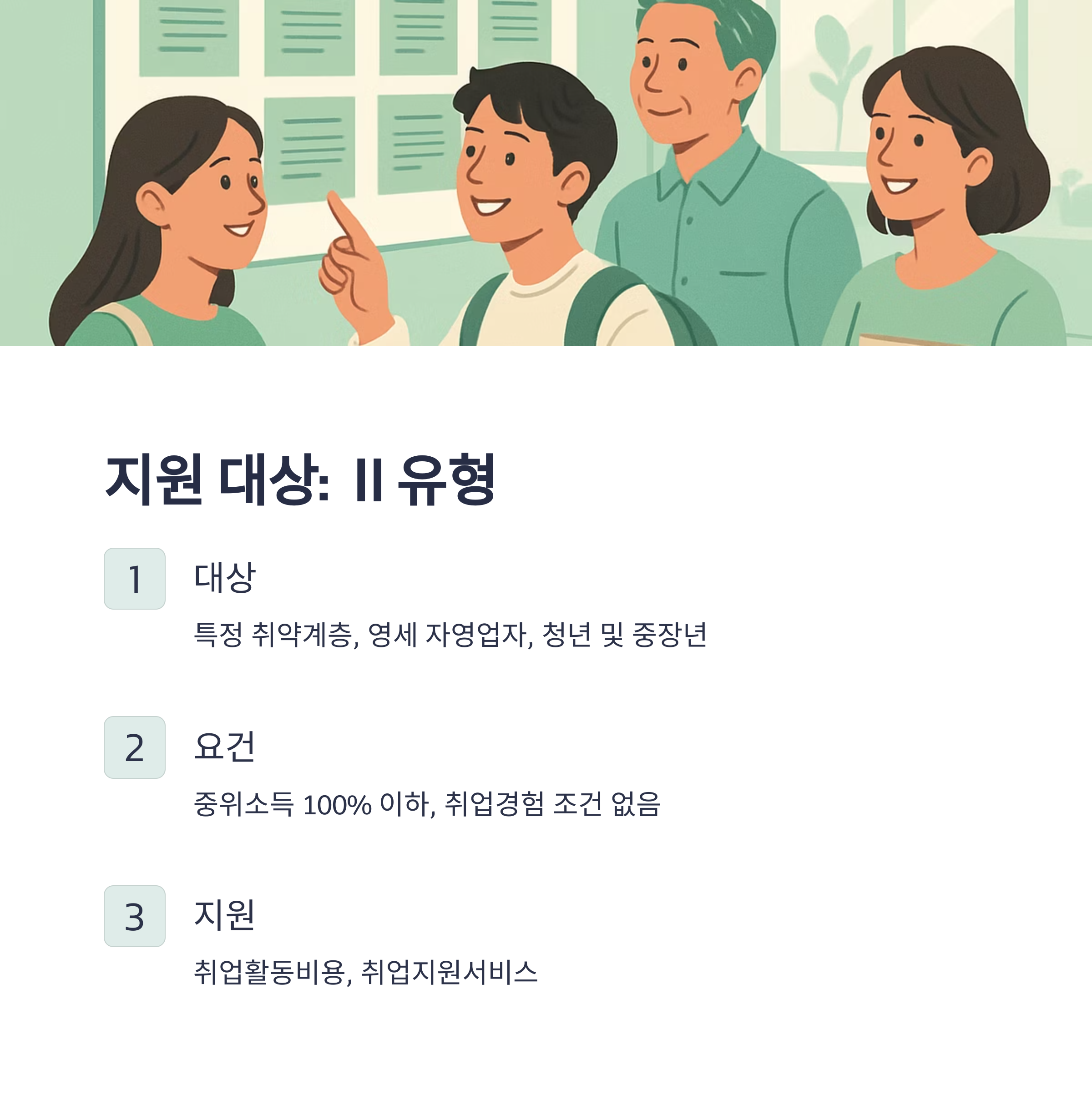 | Ⅱ유형 | 취업활동비용(훈련참여 시 월 최대 28만 4천 원 등), 10대 빈일자리 취업 시 수당 추가 |