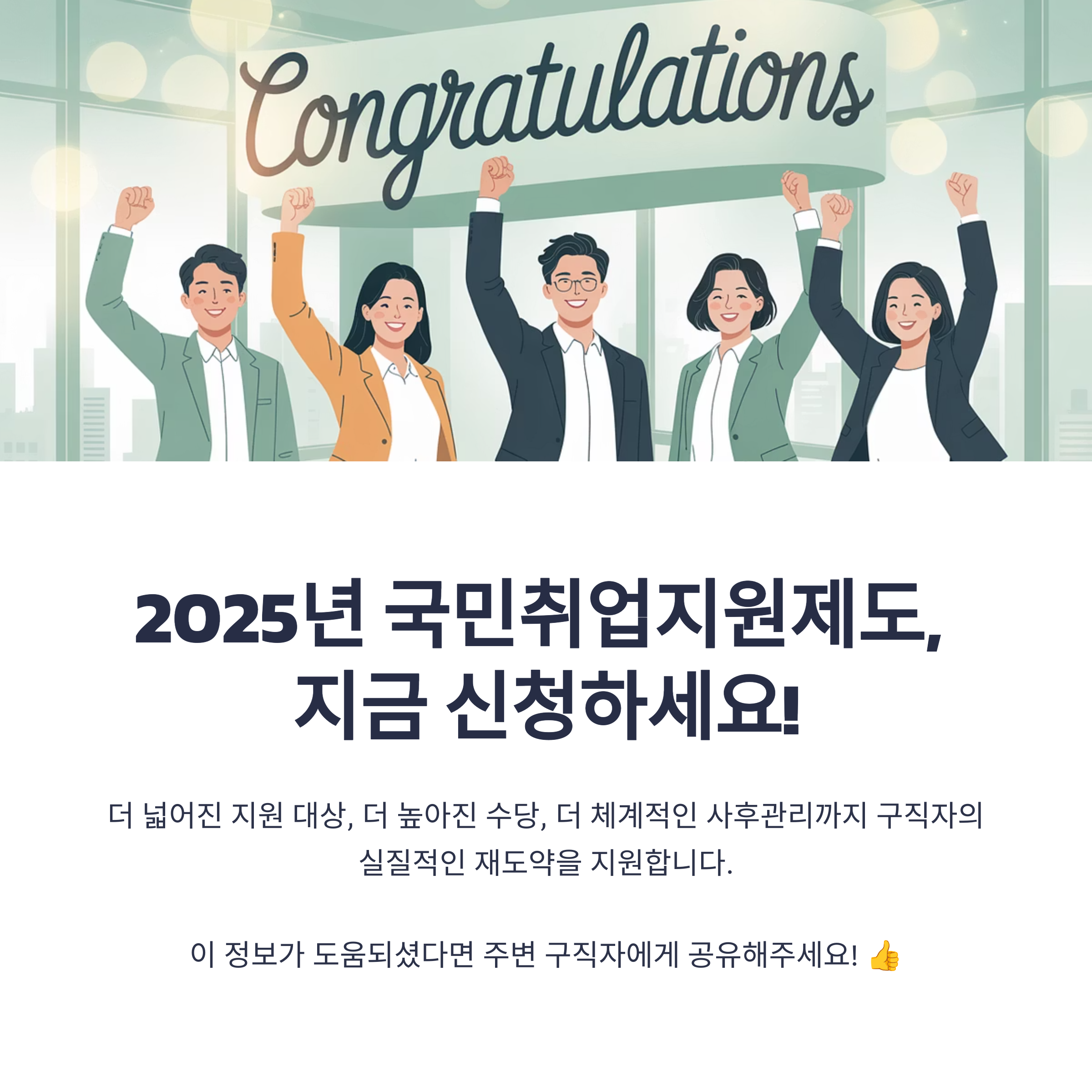 청년, 중장년, 경력단절여성, 자영업자까지 더 많은 구직자들이 실질적인 지원을 받을 수 있도록 제도가 확대·개편되었습니다.