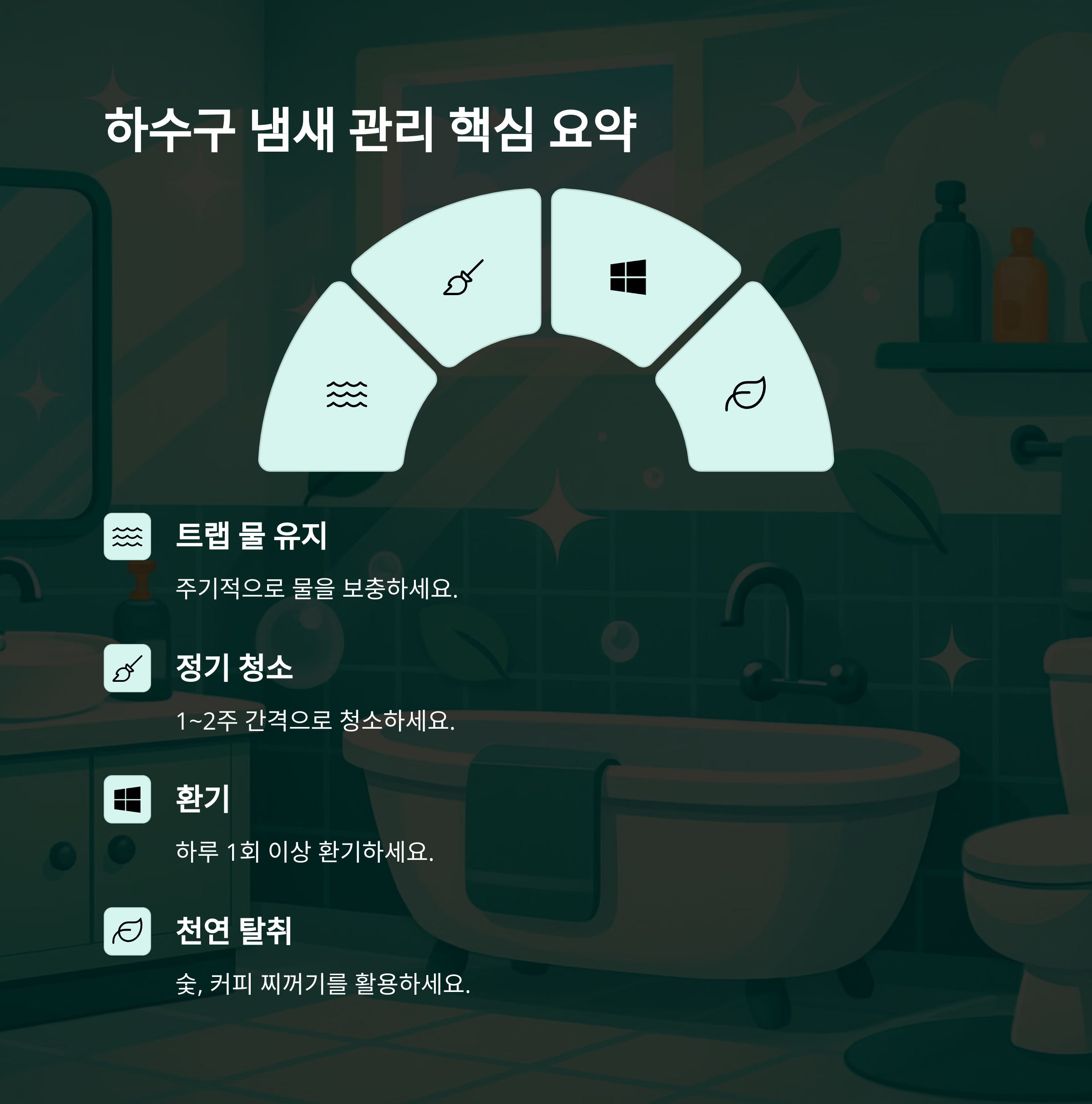 화장실, 욕실, 베란다, 싱크대 등 공간별 냄새 원인과 제거 방법을 정확히 아는 것이 중요합니다.