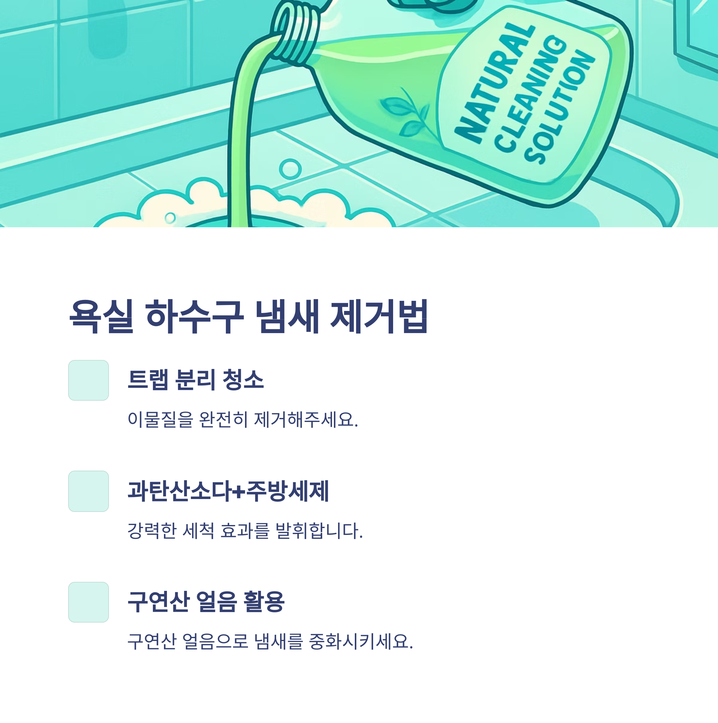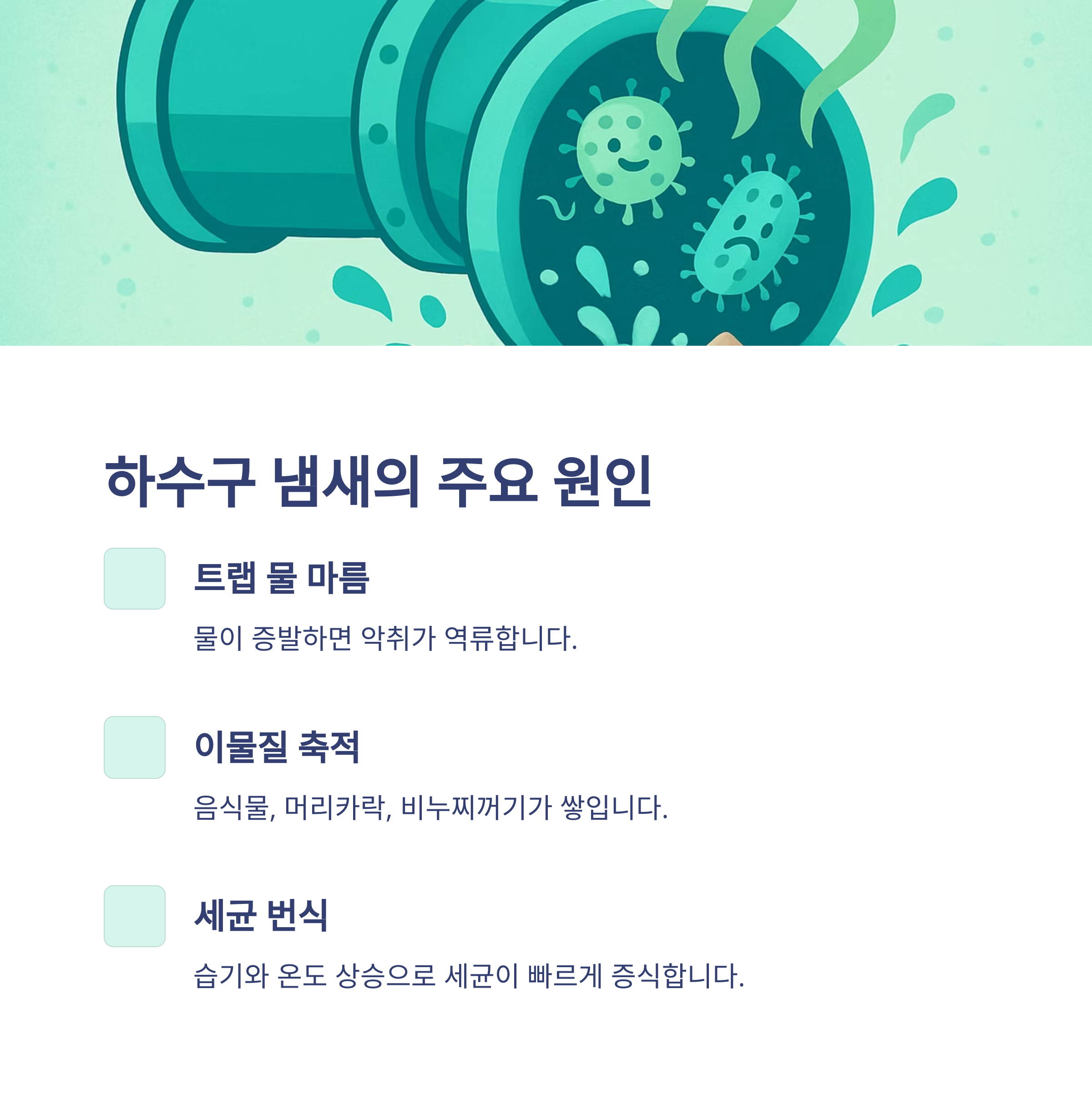 확실한 하수구 냄새 없애는 방법 총정리 (공간별 원인·해결법 완벽 정리)