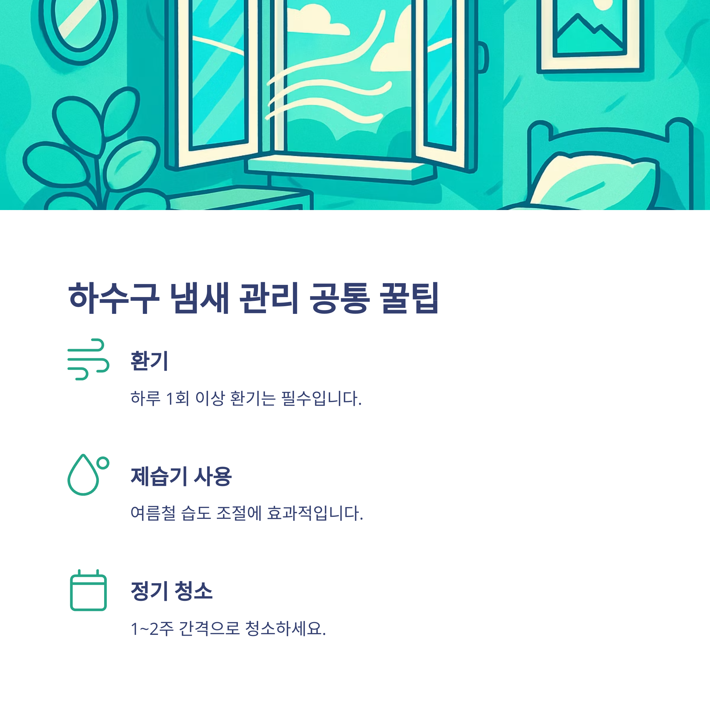 - 반복되는 냄새는 배관 구조적 문제일 수 있으므로 전문가 상담 필요
