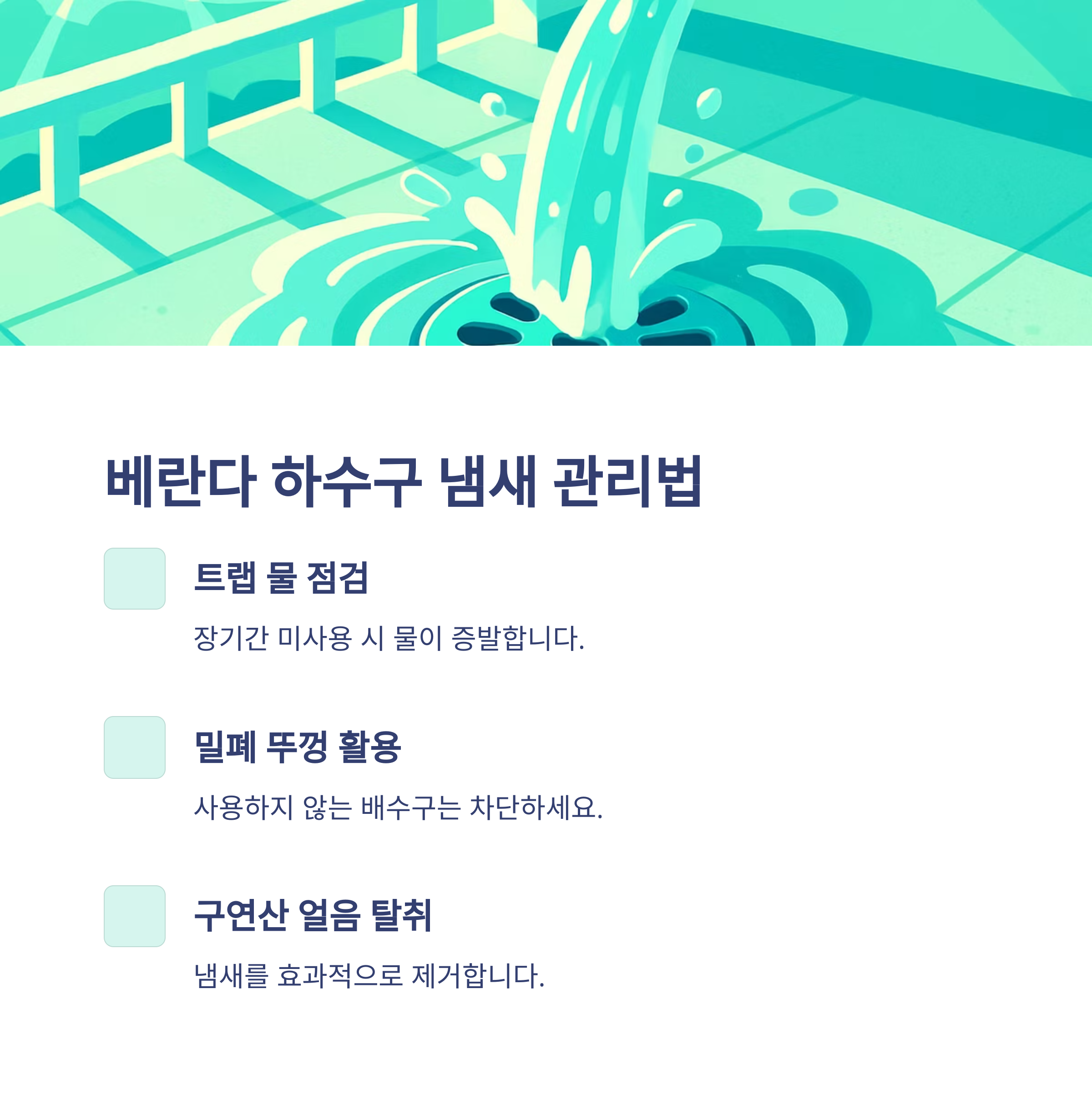 3. 베란다 하수구 냄새 없애는 방법 : 장기간 미사용 시 특히 주의