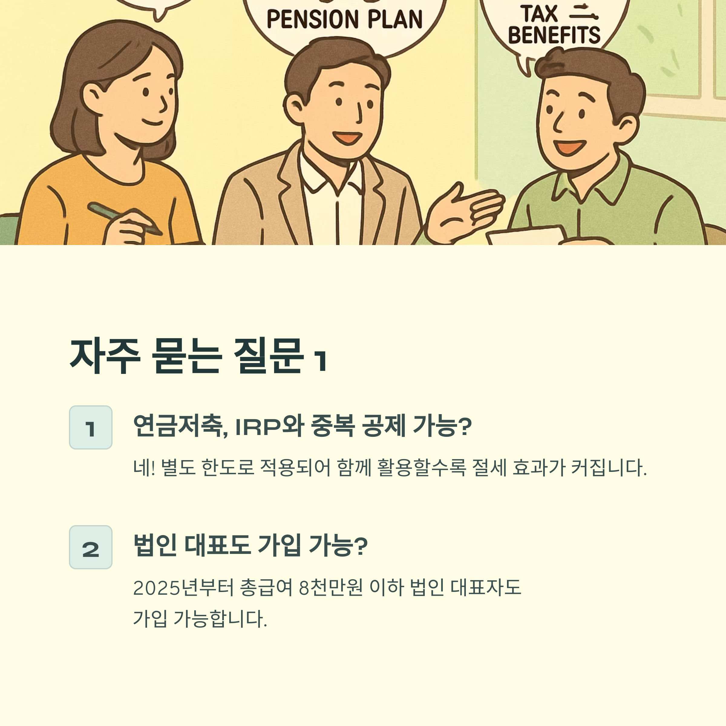 A. 2025년부터는 총급여 8천만 원 이하 법인 대표자도 가입 가능해졌습니다.