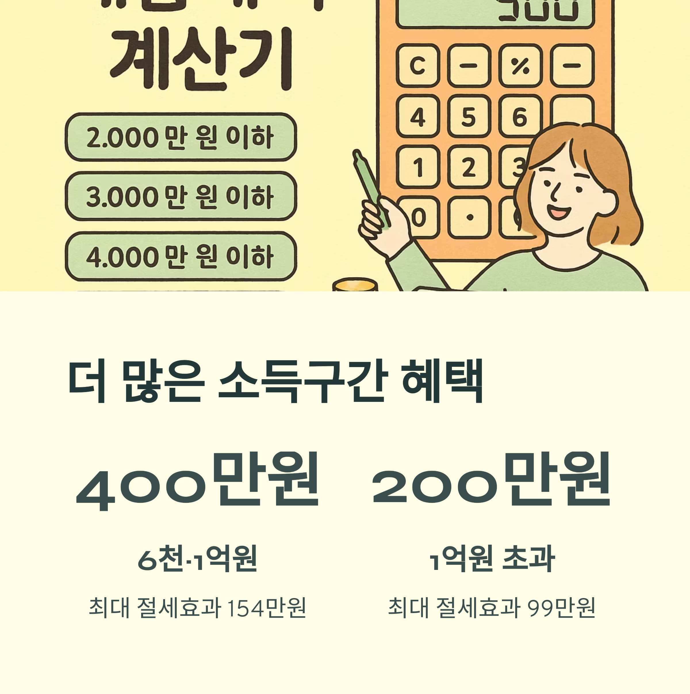 | 6천~1억 원 | 400만 원 | 26.4%~38.5% | 최대 154만 원 |