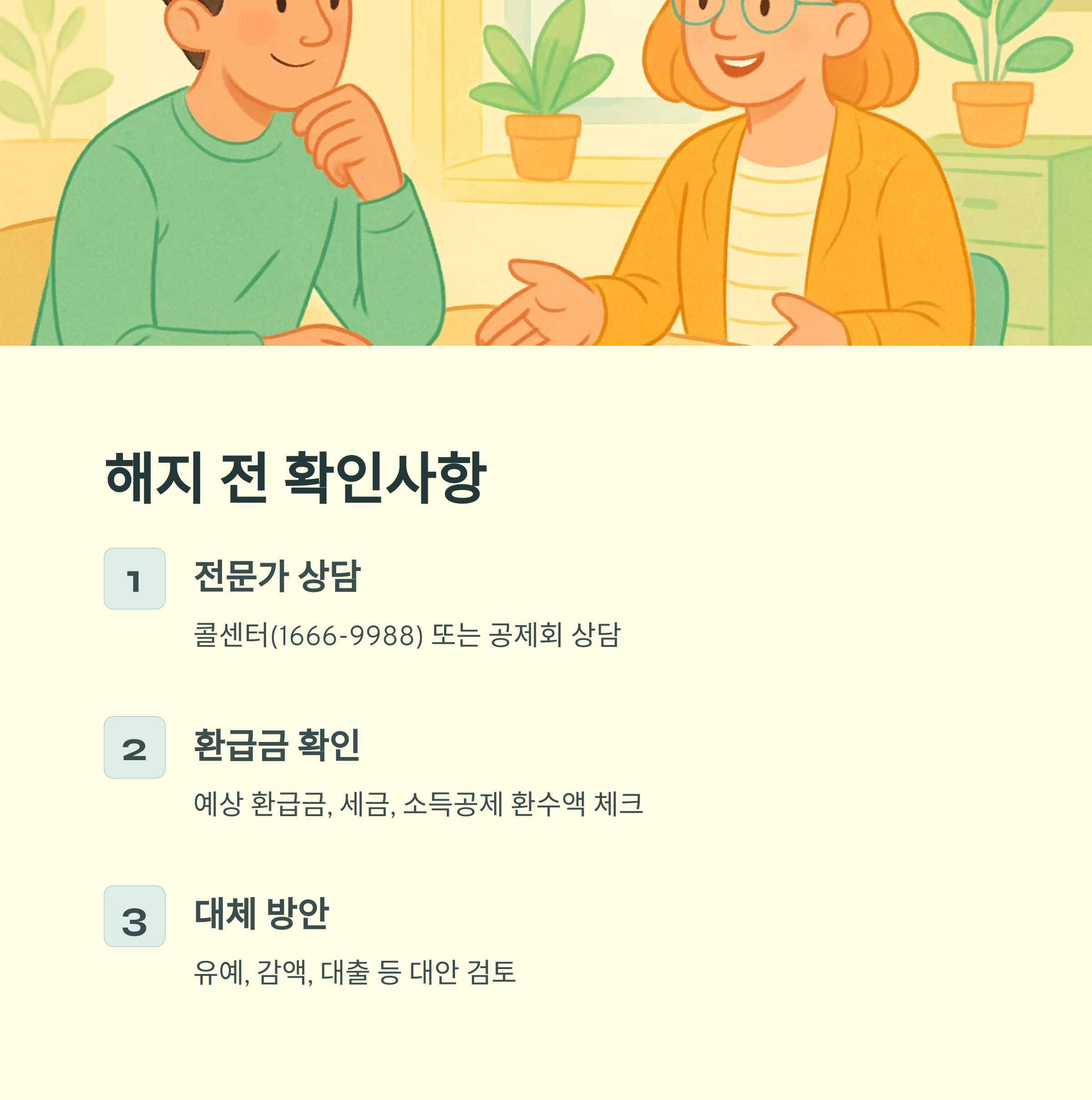 - 해지 전 반드시 콜센터(1666-9988) 또는 공제회와 상담