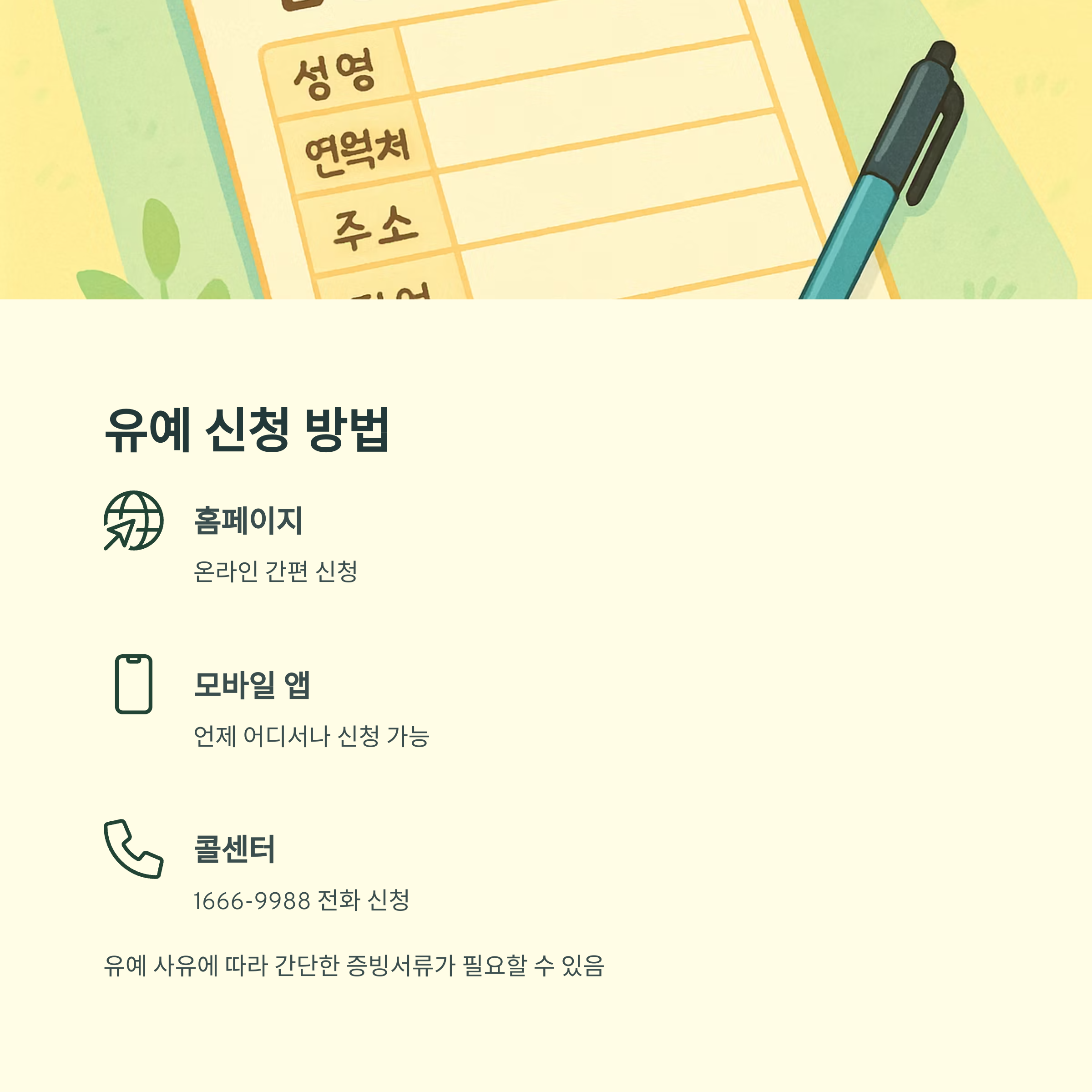 - 유예 사유에 따라 간단한 증빙서류 필요할 수 있음