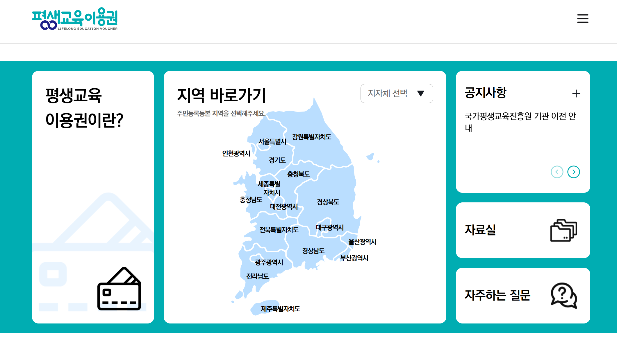 → 평생교육이용권 홈페이지에서 지역 선택하여 신청 - 방문 신청