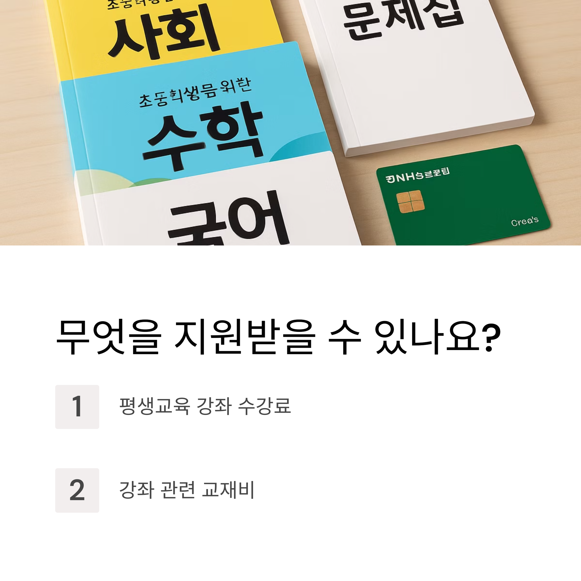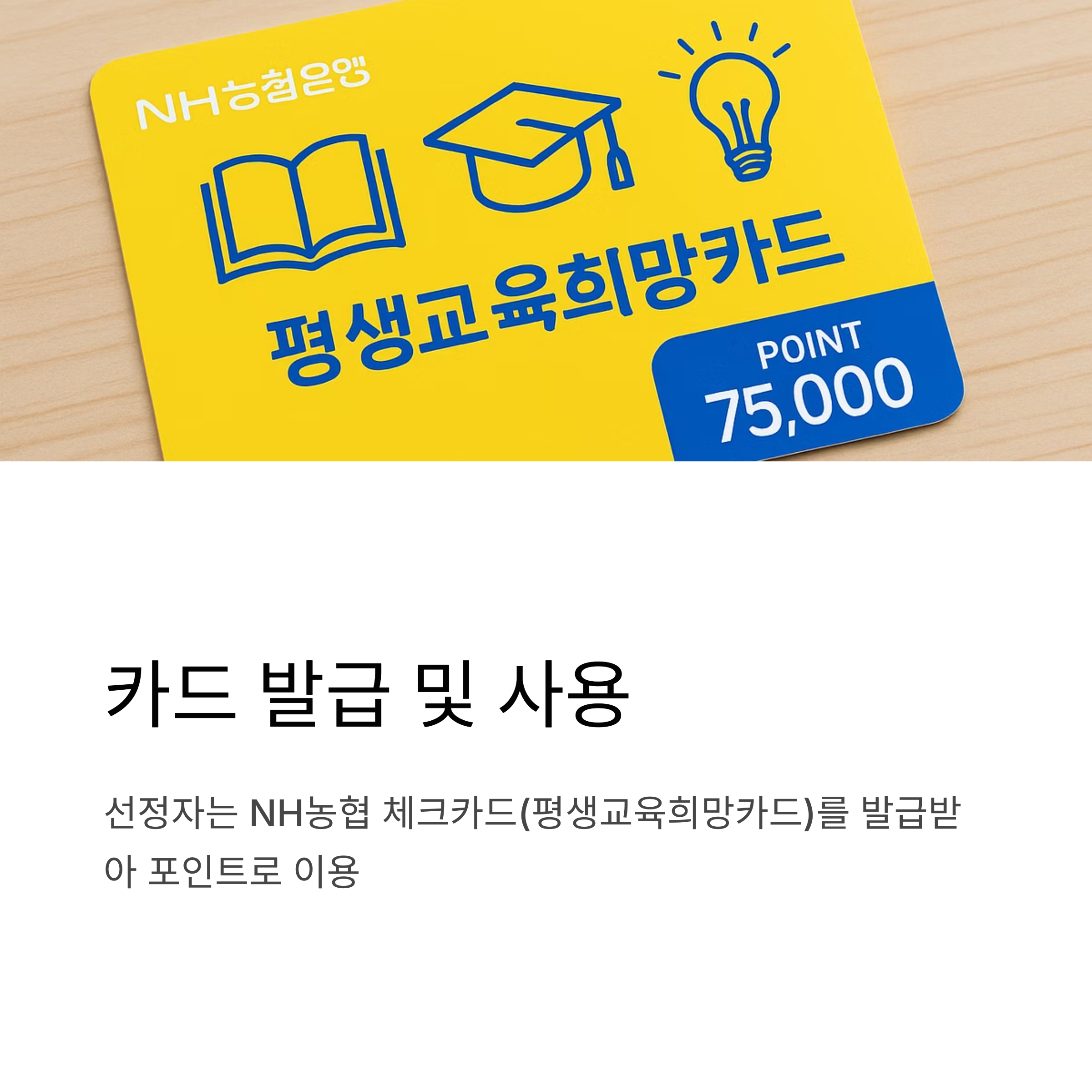 📌 선정자는 NH농협 체크카드(평생교육희망카드)를 발급받아 이용