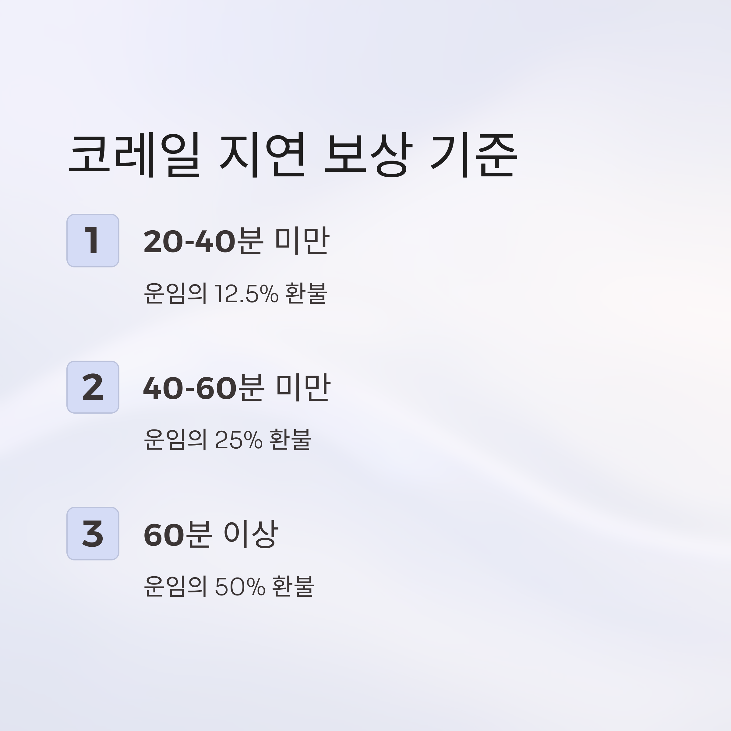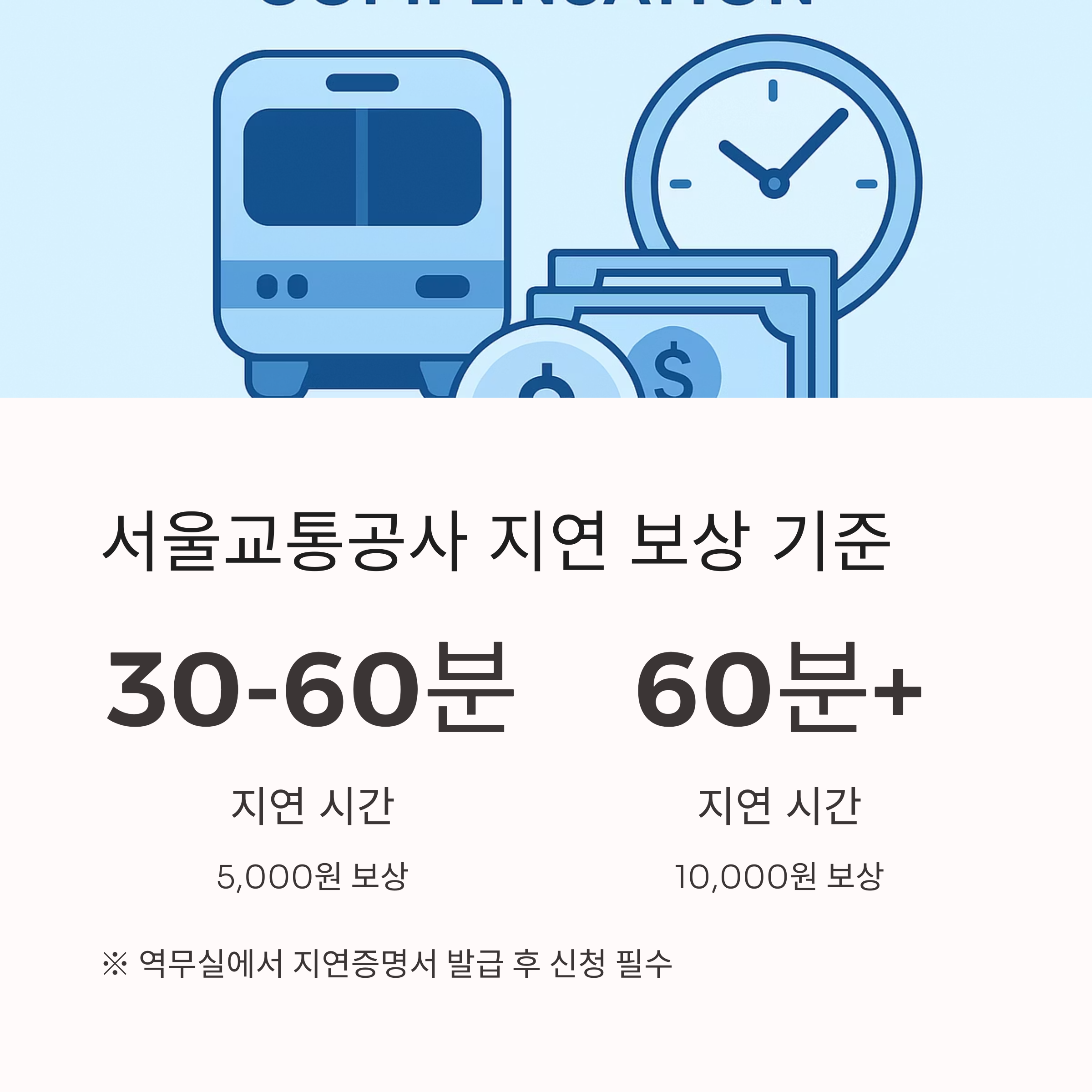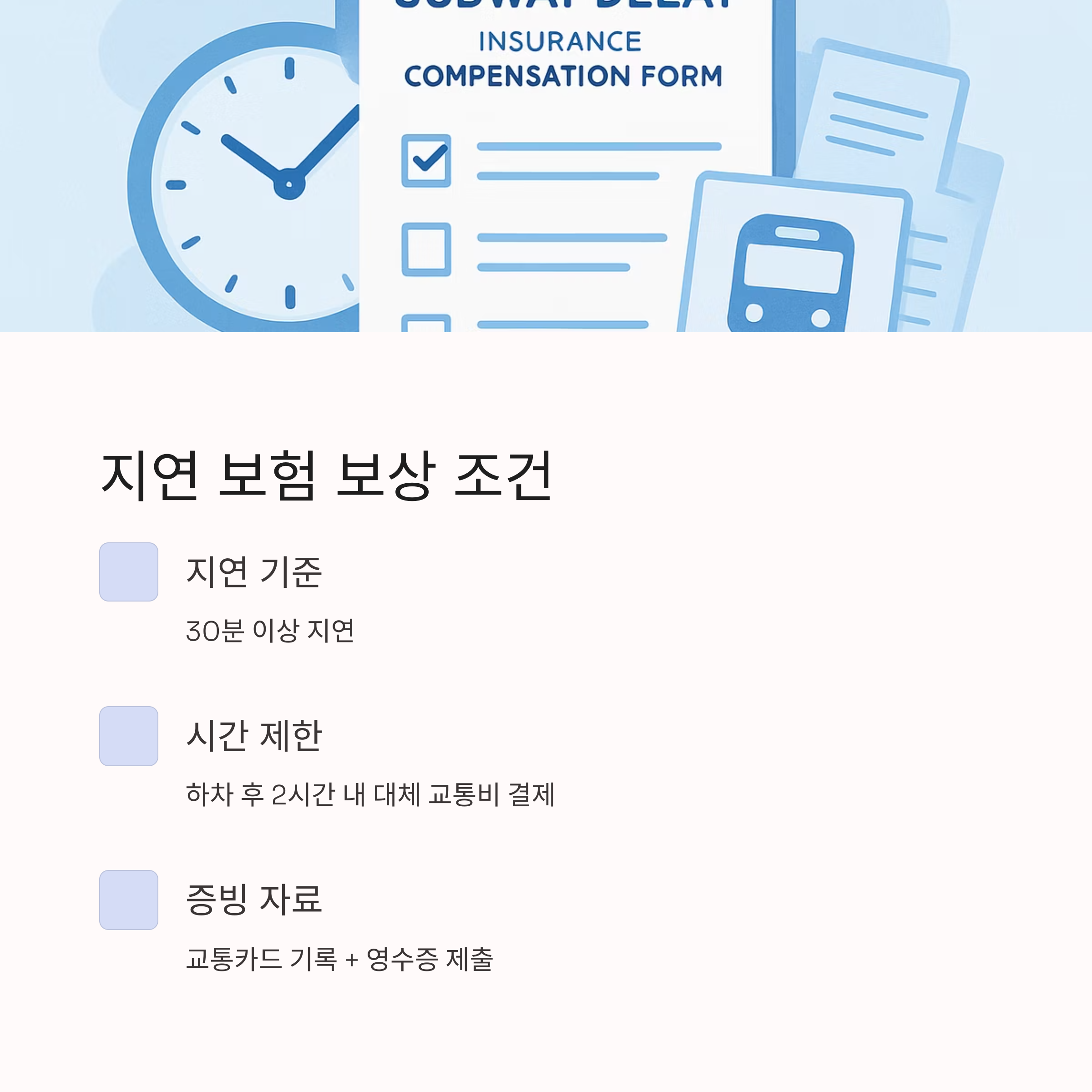 - 조건: 30분 이상 지연 + 하차 후 2시간 내 대체 교통비 결제