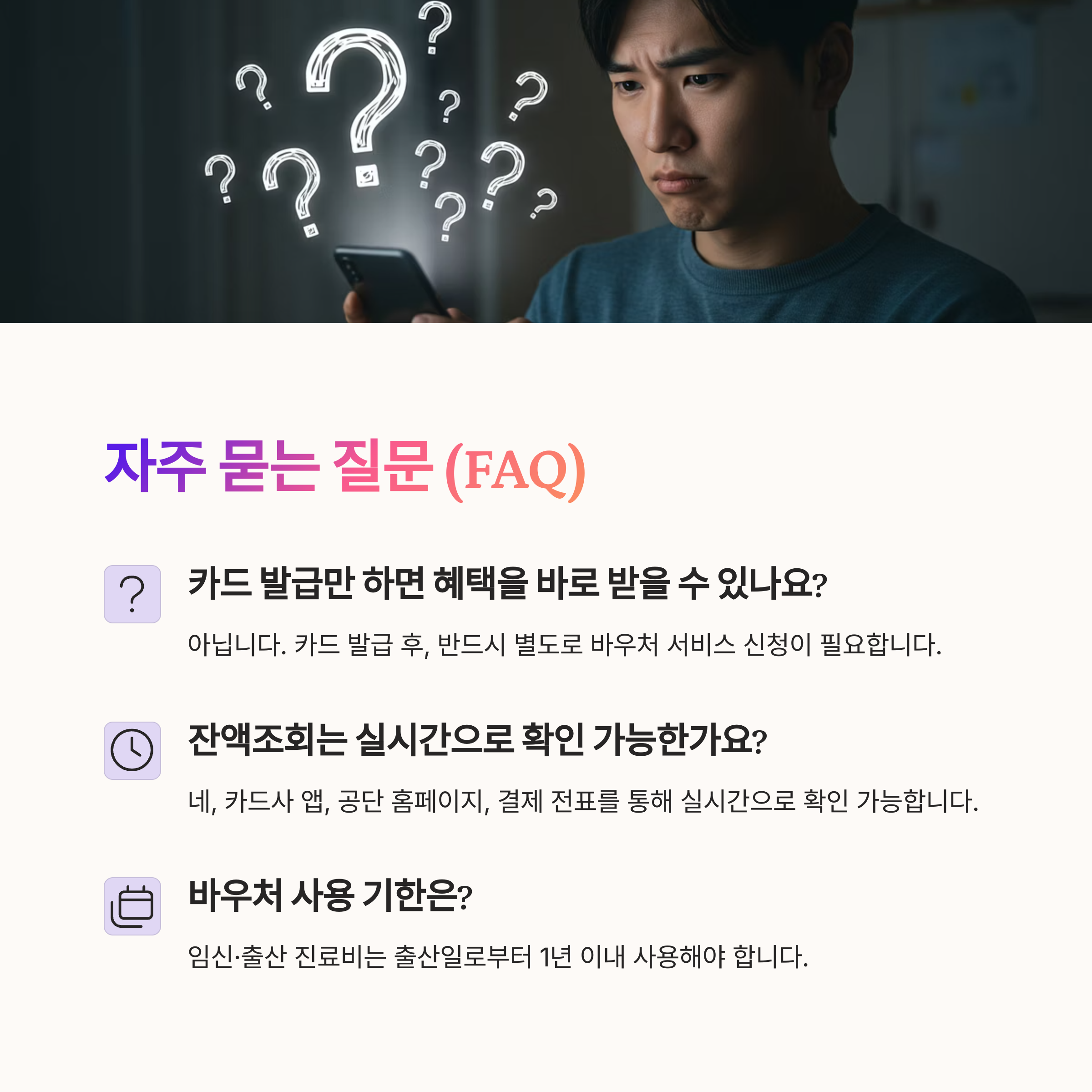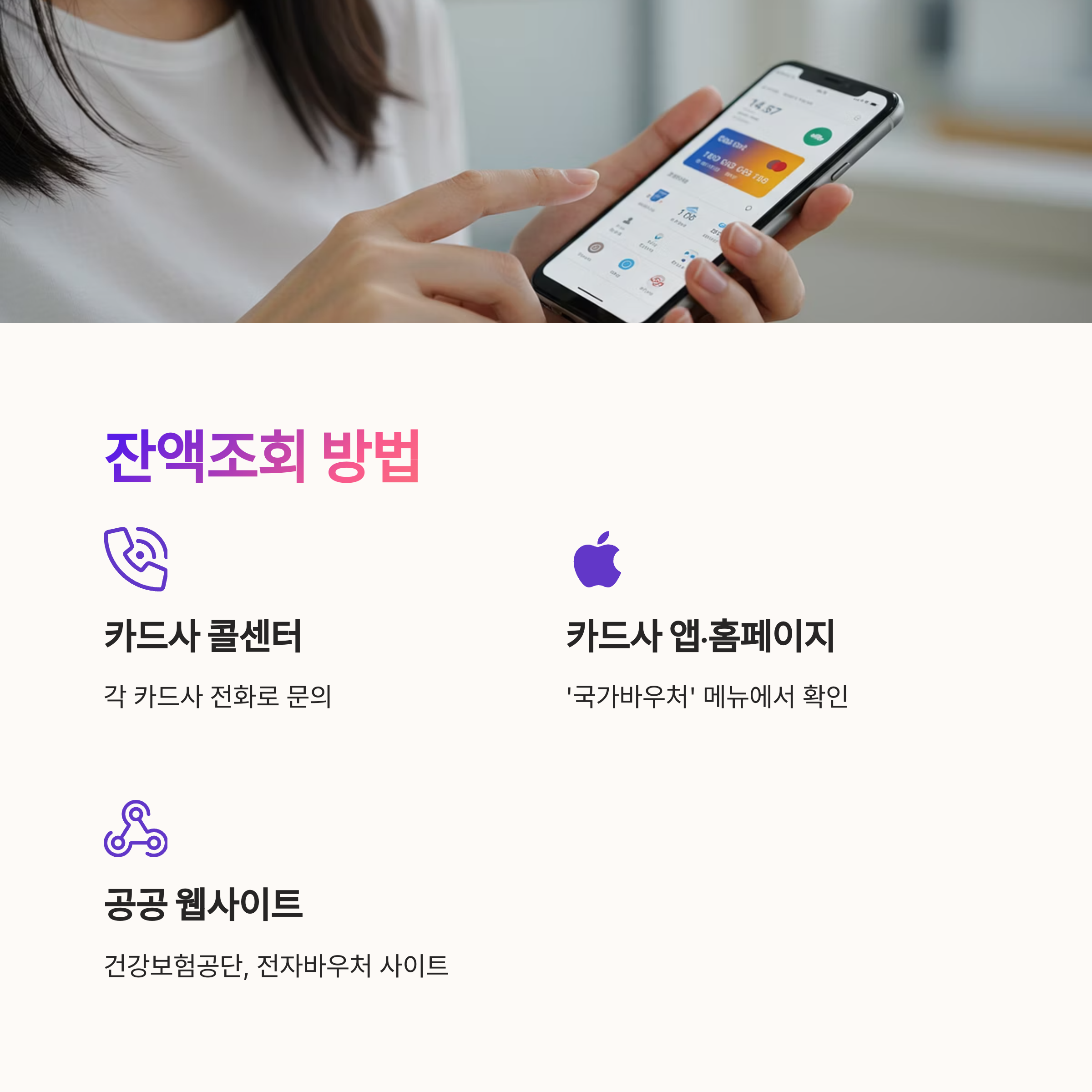 | 카드사 앱·홈페이지 조회 | '국가바우처' 또는 '임신바우처' 메뉴에서 확인 |