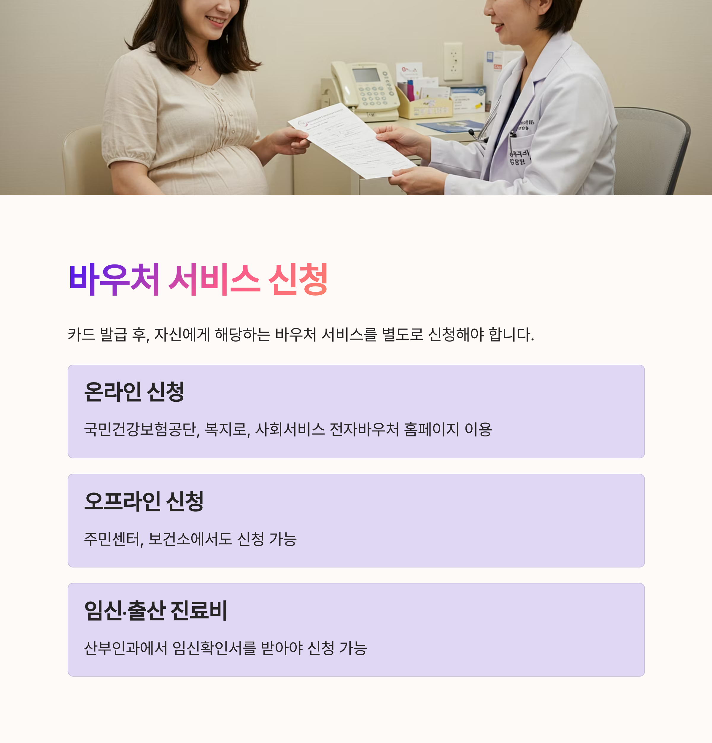 카드 발급 후, 자신에게 해당하는 바우처 서비스를 별도로 신청해야 합니다.