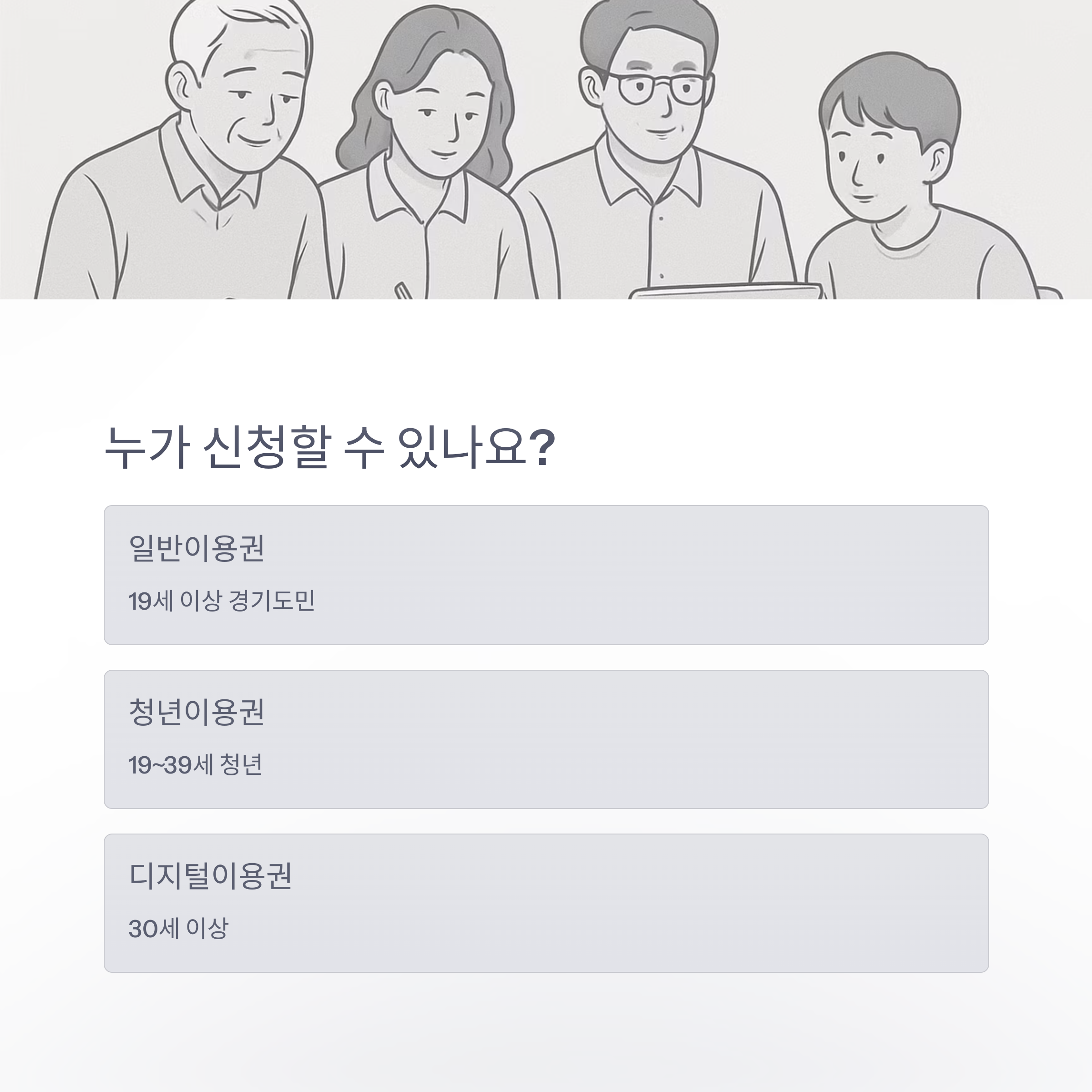 | 일반이용권 | 만 19세 이상 | 경기도민 누구나 신청 가능 |