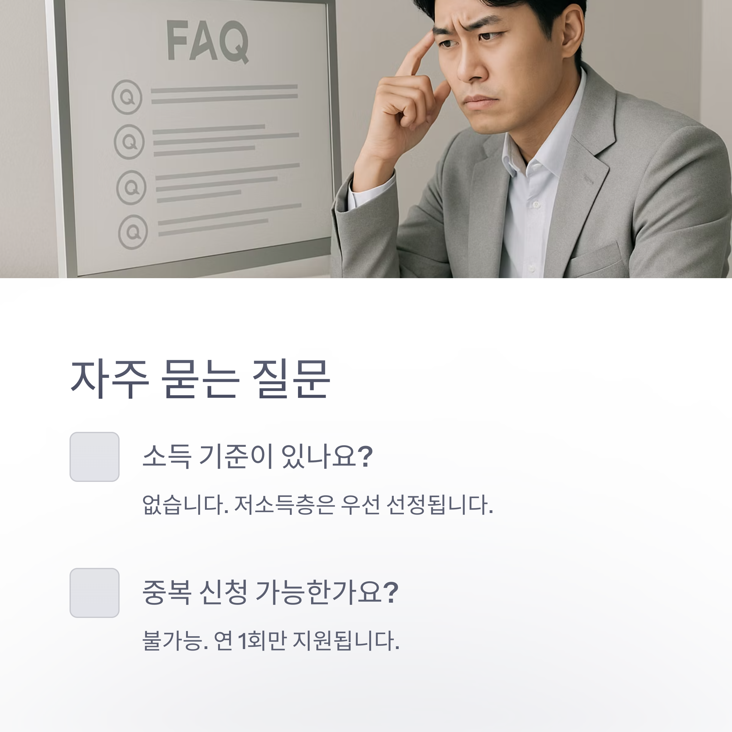 A. 아니요. 동일 연도 내 1회만 지원되며, 중복 수혜자는 제외됩니다.