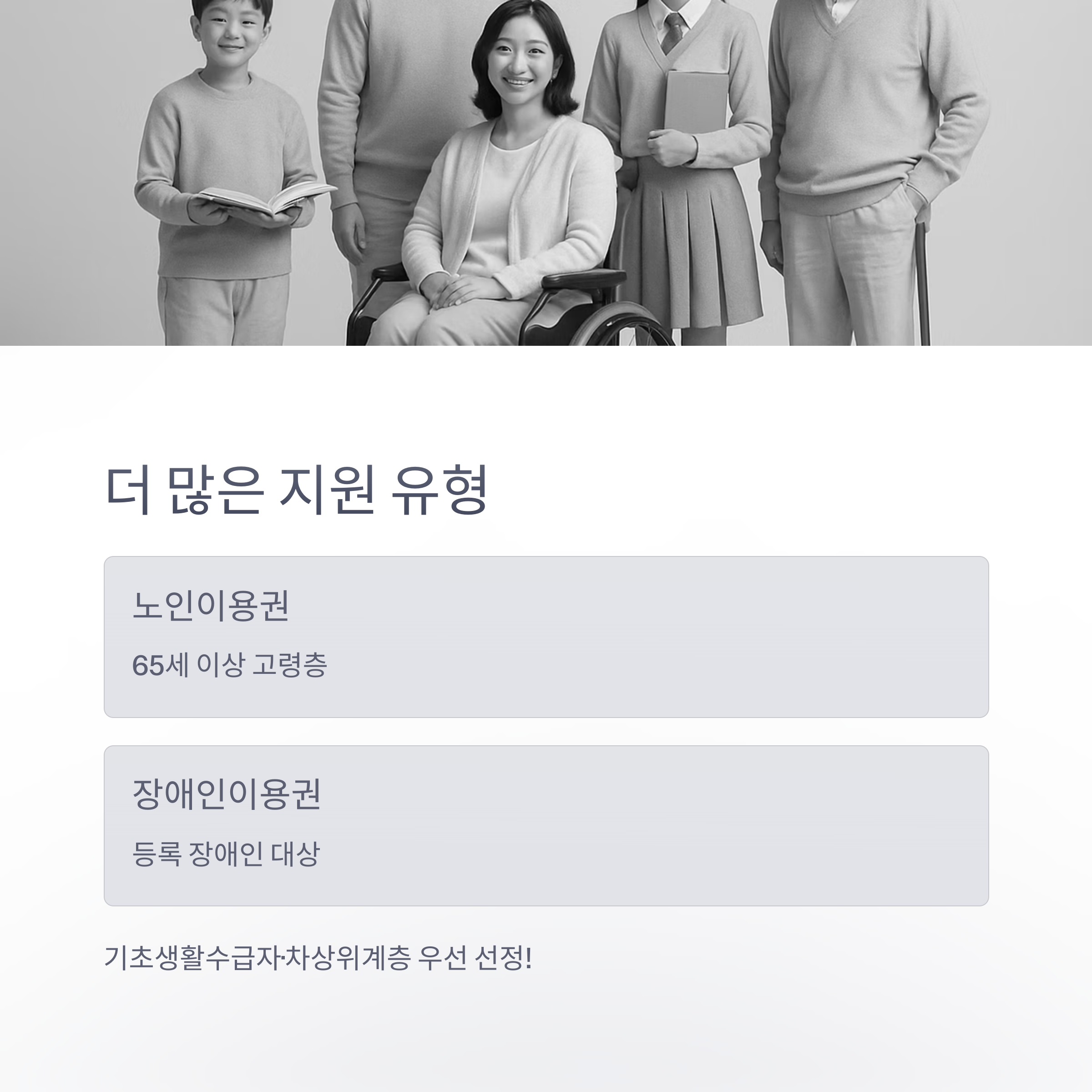 | 노인이용권 | 만 65세 이상 | 고령층 대상 |