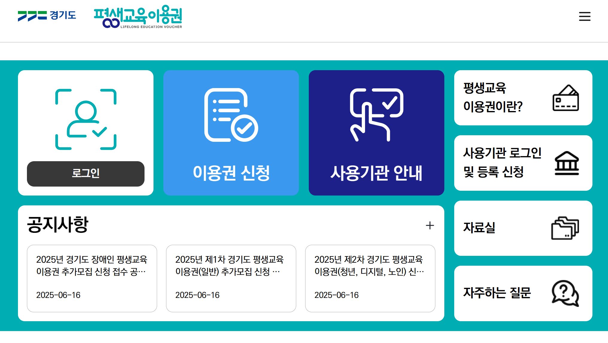 - 일반·청년·디지털·노인형: 경기도 평생교육이용권 누리집