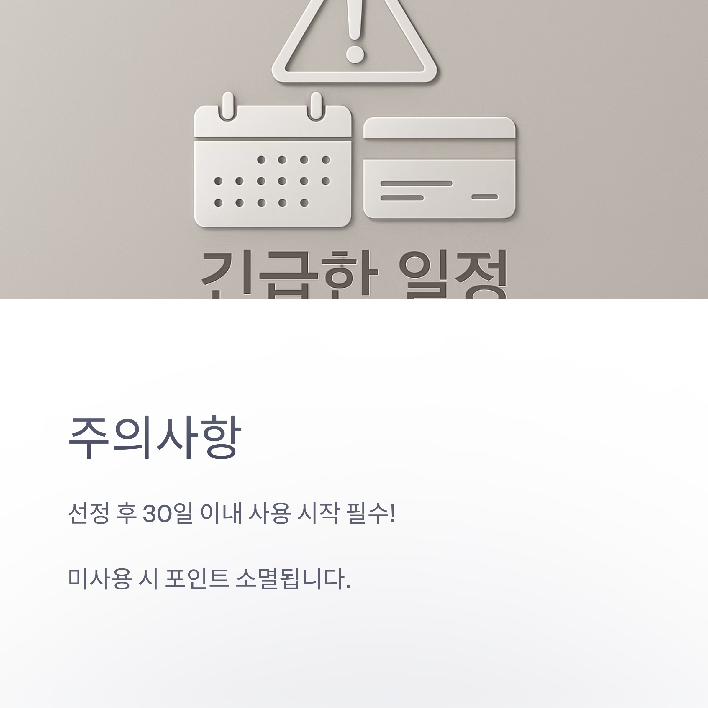 - 주의사항: 선정 후 30일 이내 사용 시작 필수, 미사용 시 포인트 소멸