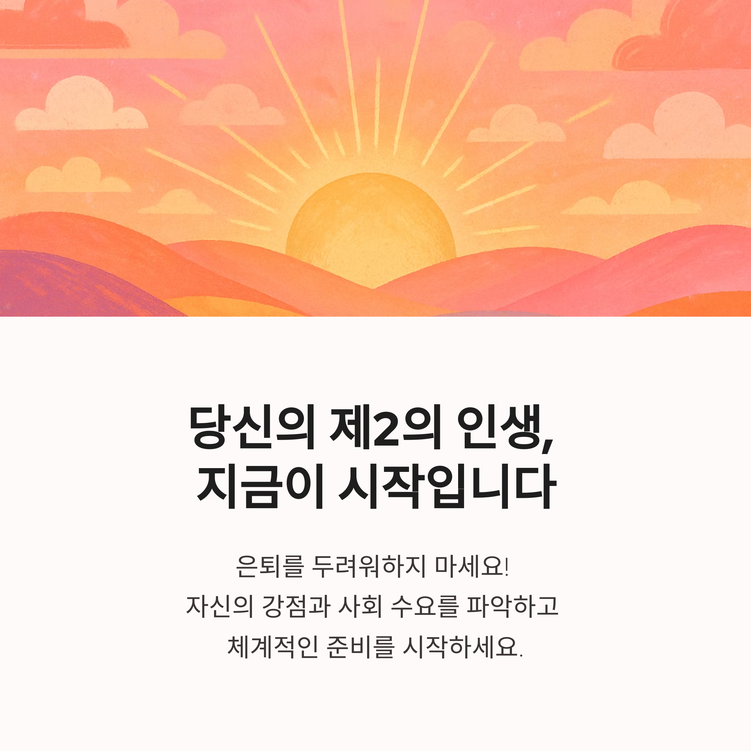 은퇴 후에도 의미 있고 안정적인 삶을 살기 위해서는, 자신의 강점과 사회 수요를 정확히 파악한 후 체계적인 준비가 필요합니다.