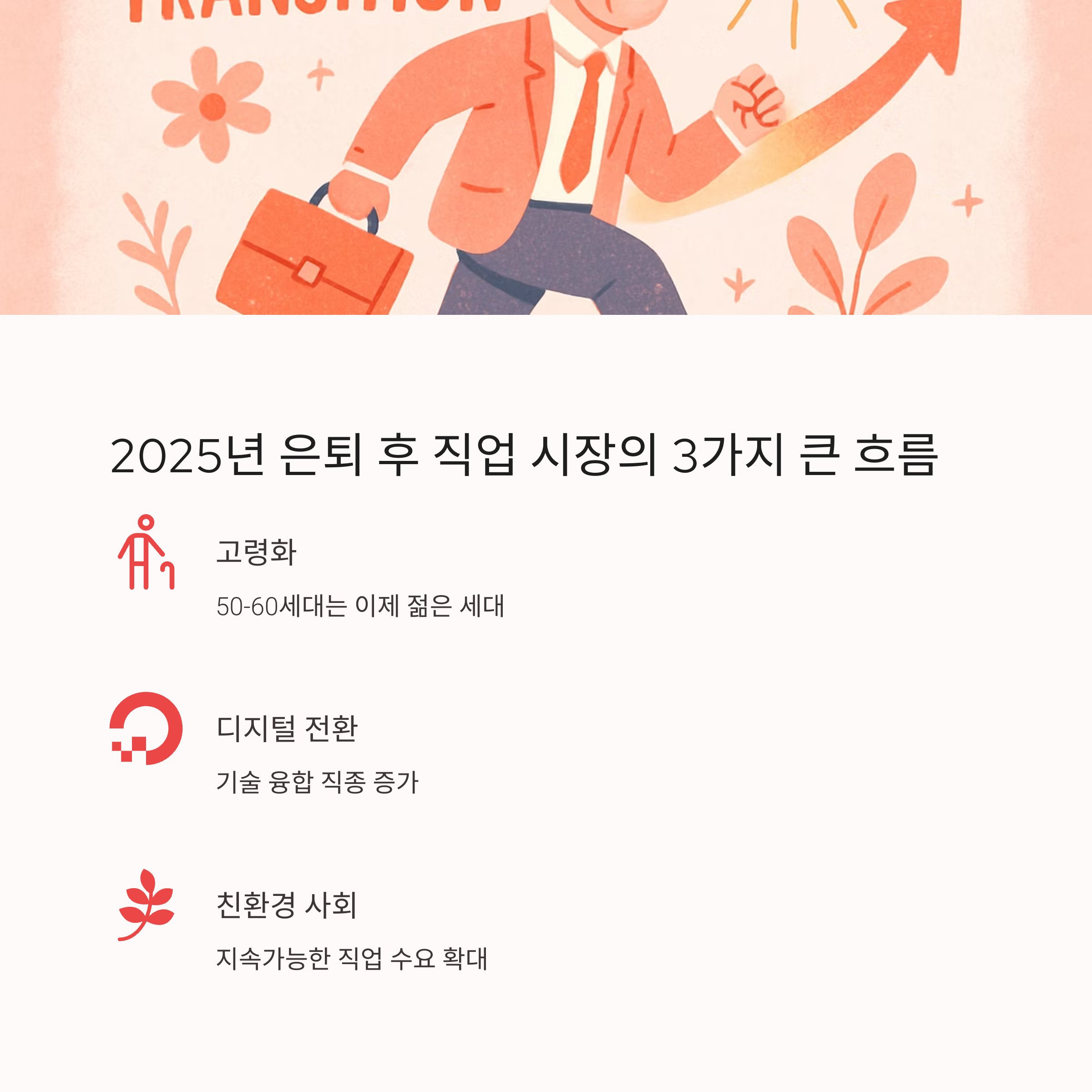 특히 2025년에는 고령화, 디지털 전환, 친환경 사회라는 세 가지 큰 흐름이 은퇴 후 직업 시장을 바꾸고 있습니다.