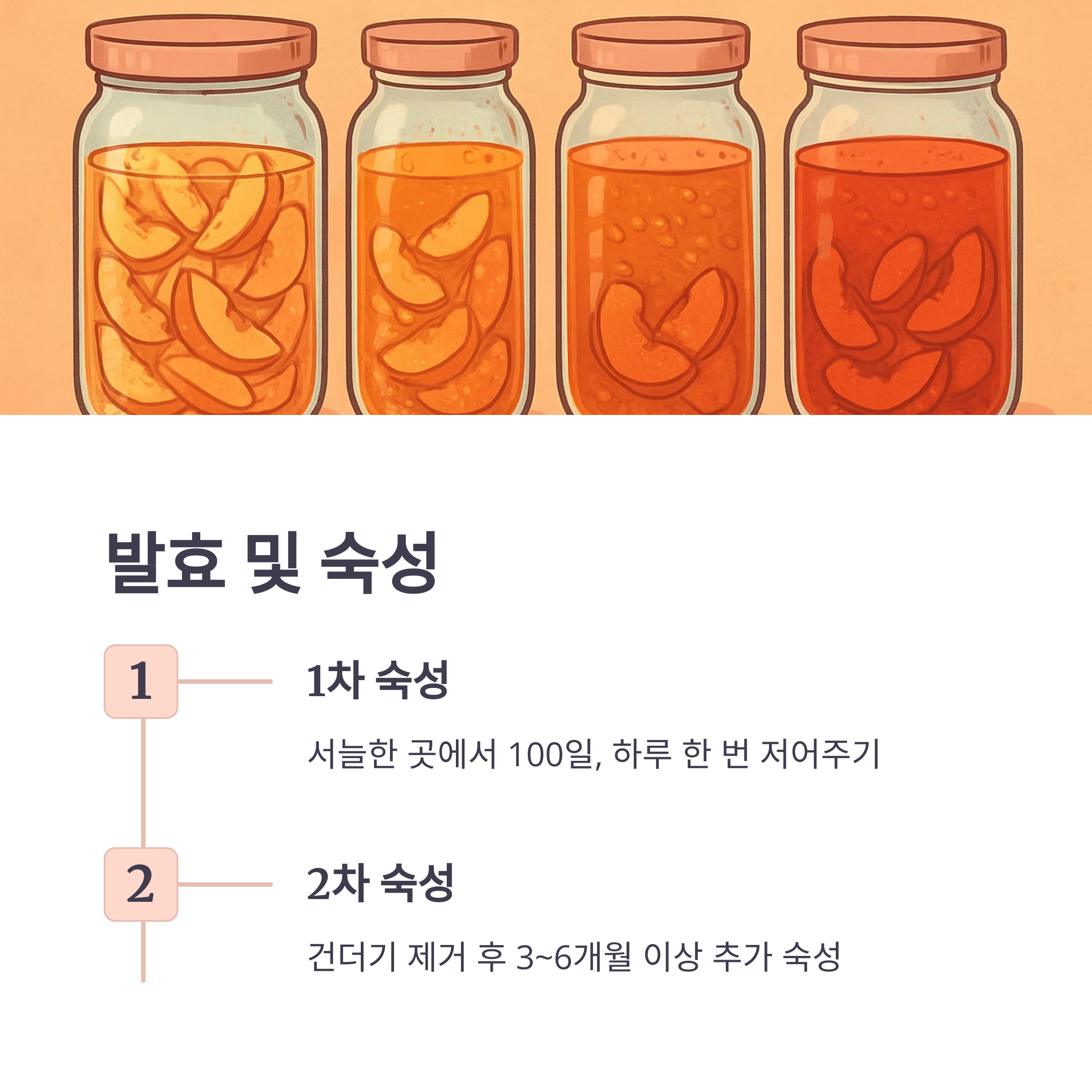 | 2차 숙성 | 건더기 제거 후 냉장 보관 |