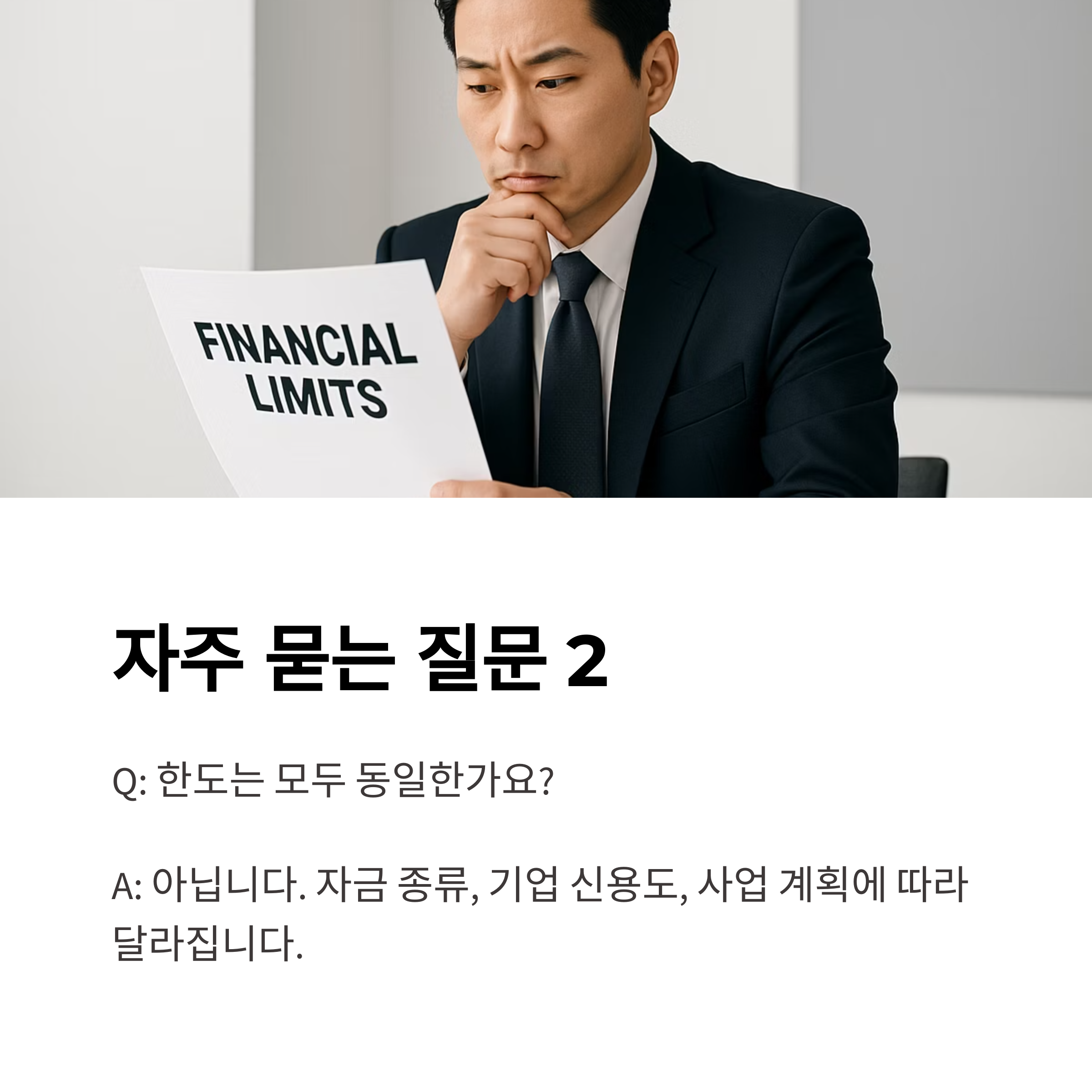 A2. 아닙니다. 자금 종류, 기업 신용도, 사업 계획에 따라 달라집니다.