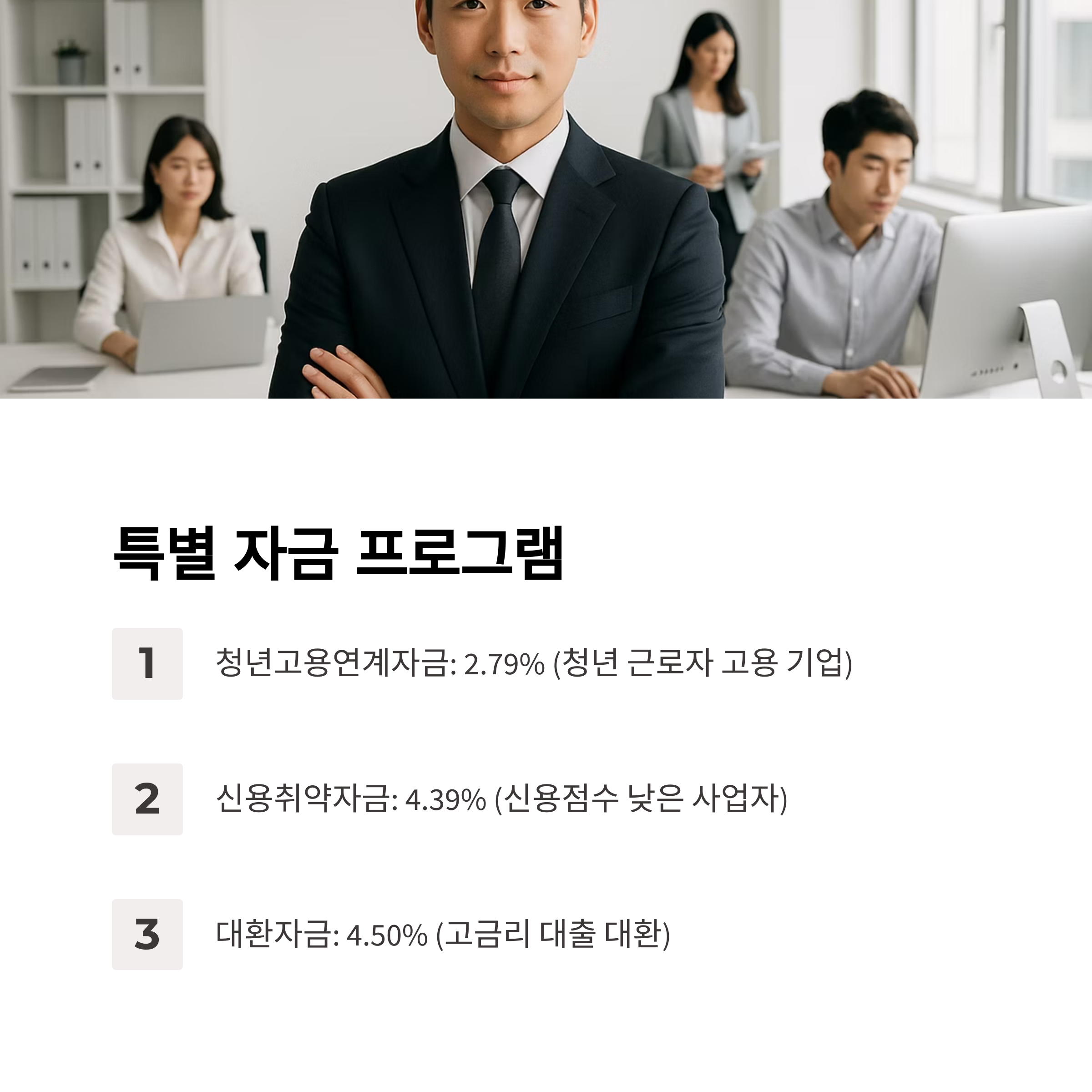 | 특별경영안정자금 | 재해 등 위기 상황 | 2.00~2.79% |