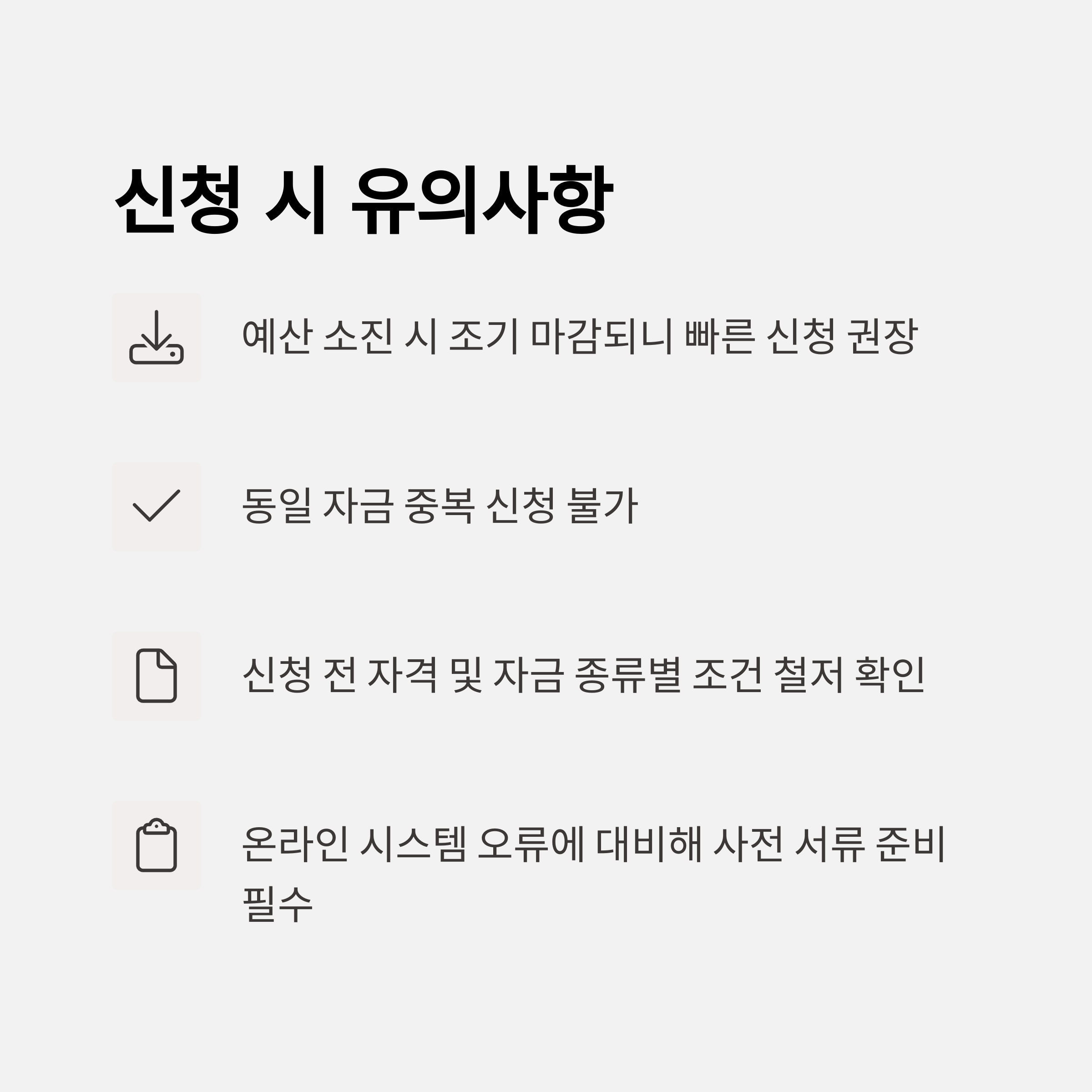 ✅ 신청 전 자격 및 자금 종류별 조건 철저 확인