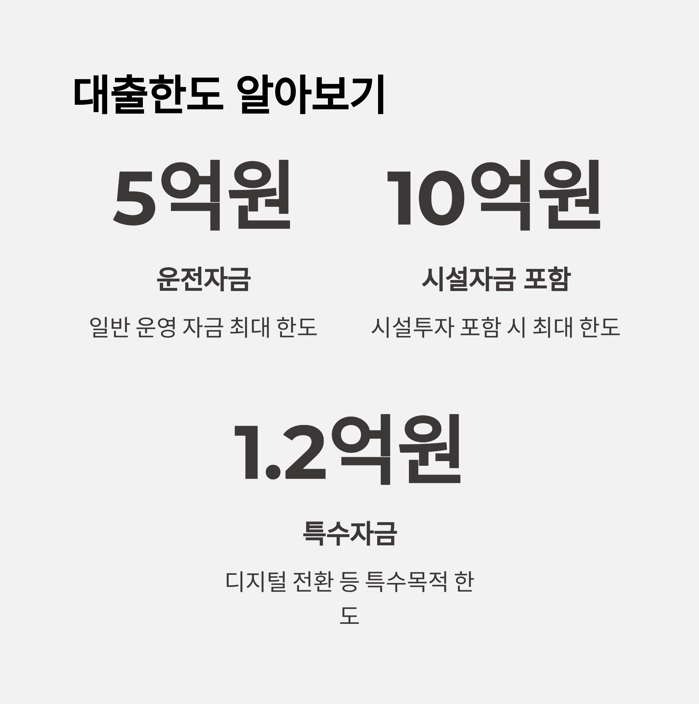 - 특수자금(예: 디지털 전환): 1.2억 원 등 별도 한도 운영