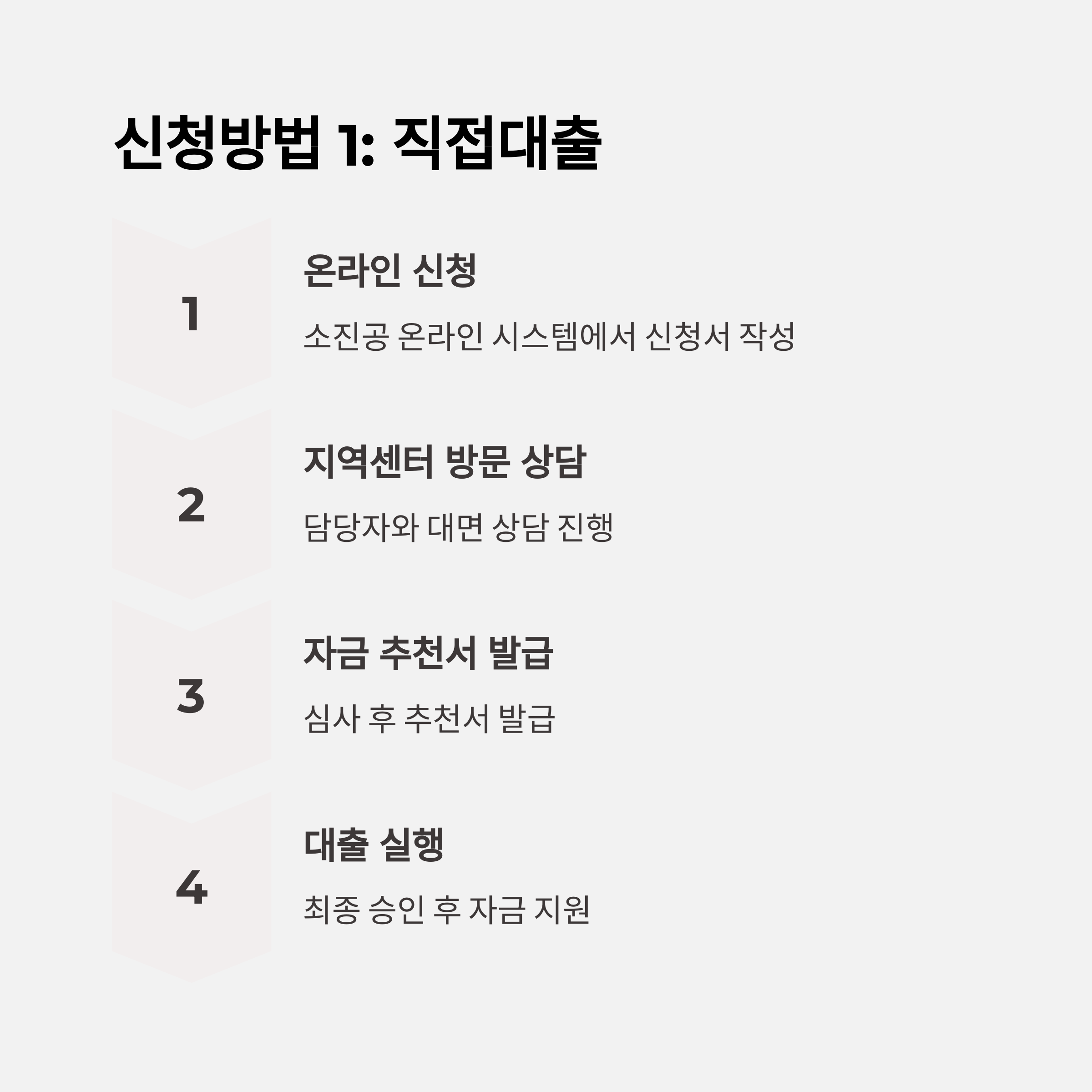 - 절차: 온라인 신청 → 지역센터 방문 상담 → 자금 추천서 발급 → 대출 실행