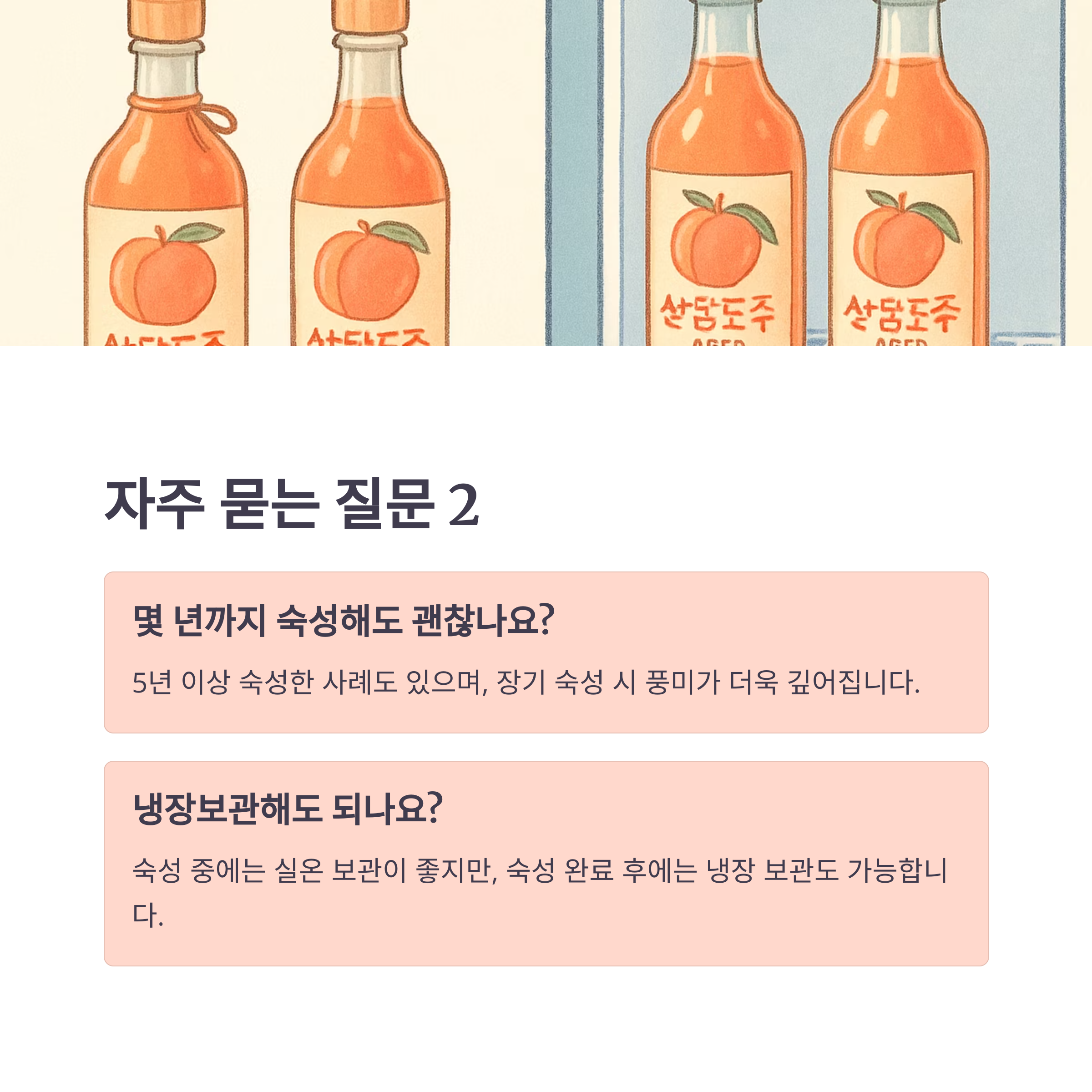 A. 5년 이상 숙성한 사례도 있으며, 장기 숙성 시 풍미가 더욱 깊어집니다.