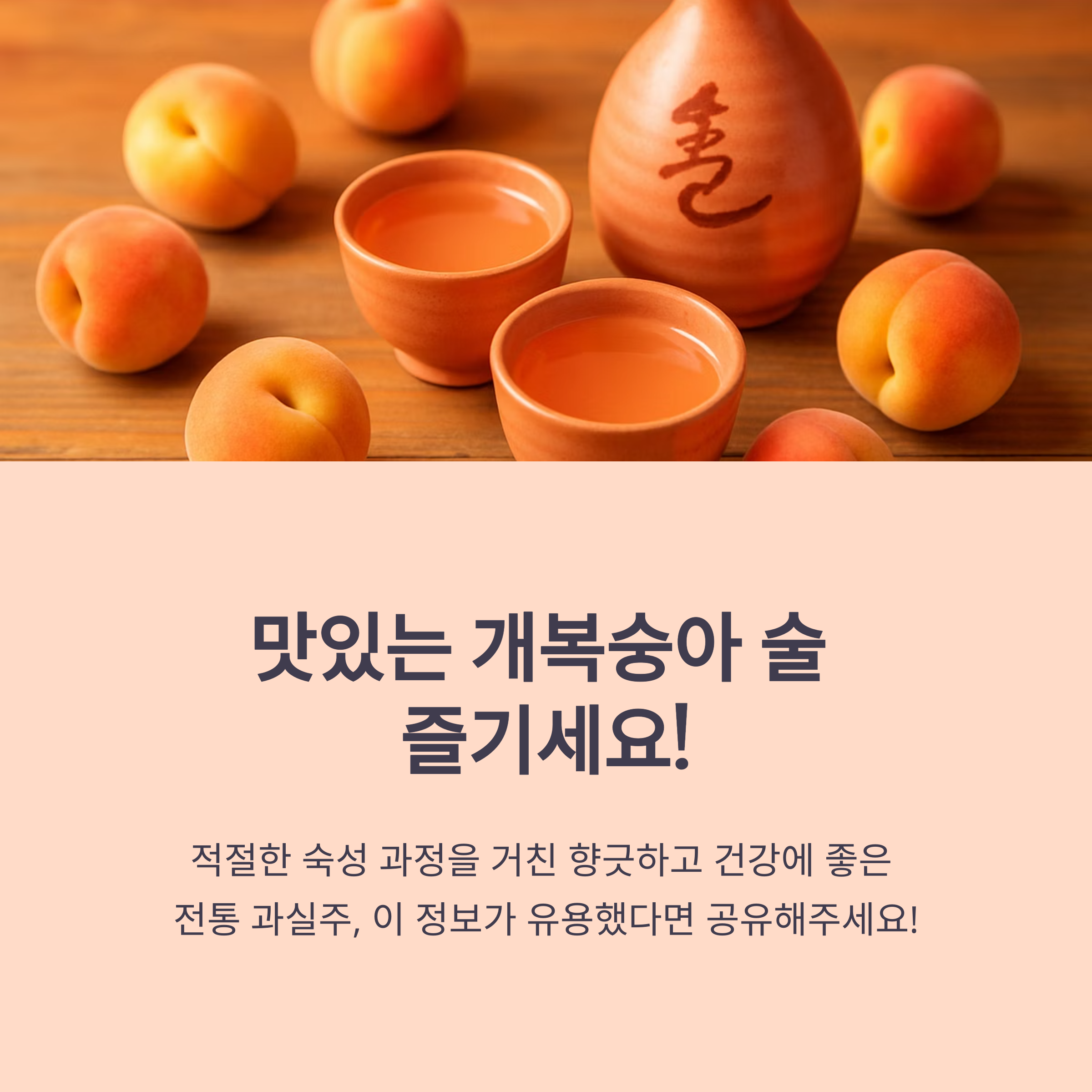 개복숭아 술은 적절한 숙성 과정을 거치면 향긋하고 건강에 좋은 전통 과실주가 됩니다.
