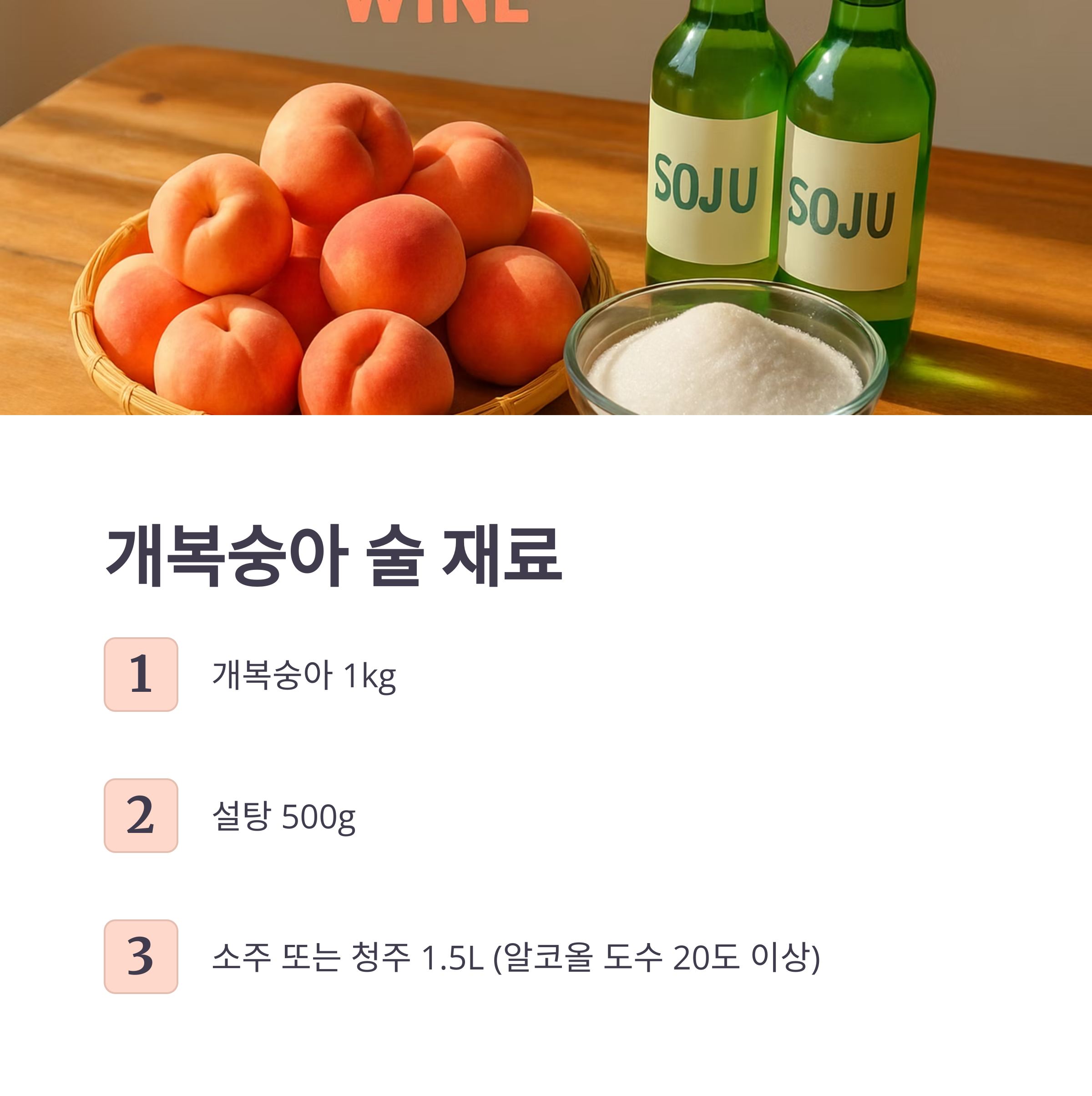 개복숭아 술 담그는법의 핵심은 재료 준비와 비율을 정확히 맞추는 것입니다.