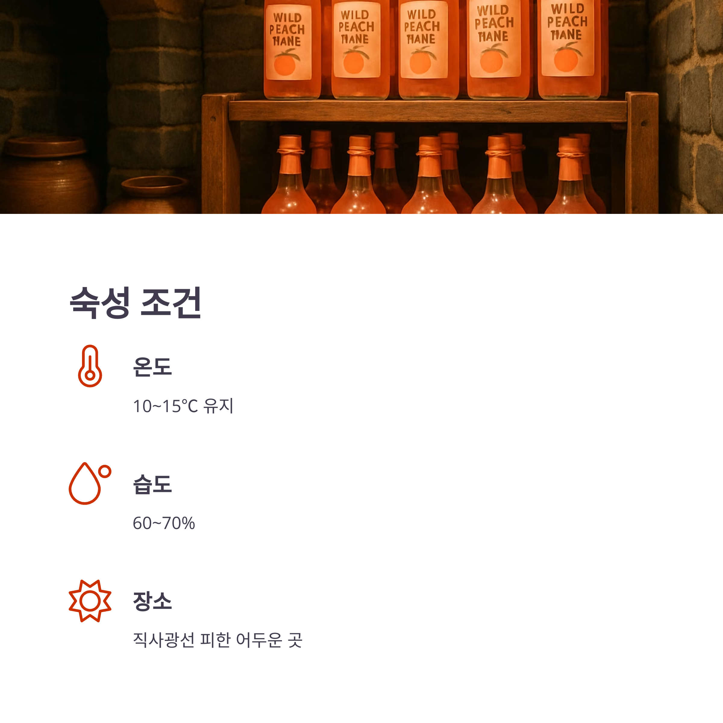 올바른 숙성 과정을 거친 개복숭아 술은 더욱 깊고 풍부한 맛을 자랑합니다.